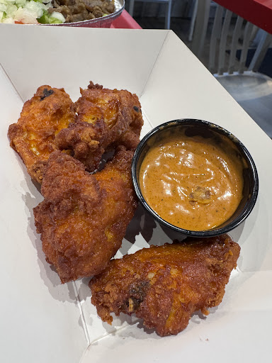 My experience was not as I expected it to be. If you are a traveller, be ready to meet inpatient staff. Yes, I got it, they are trying to maintain a quick service. But they also need to take the time and communicate with each customer. I had an order for 4, had my order written down, and there were 2 people waiting in the line. There was no âOrder Hereâ sign, so I went to the cashier. No one of the 5 staff members asked â how can I help you?â I was totally ignored until I realized how everything is done, so I became the last one in the line. I showed the lady the written order, so she knows that I have several items. Once I read the first one, she took the plate and passed me. I was trying to tell her which toppings I want on the plate she had, but she was asking about the next order. I thought she wanted to know my order and take care of the additions later, but this was not the case. She stopped me to tell the other staff member to put the sauce vertically not horizontally. The man was a little confused, so she had to repeat her explanation. I told her that I am traveling and this is the first time I order here. Yet, nothing have changed. I was given my sandwich with chicken only, no sauce, no lettuce, no tomato. The lady was rushing, and she did not care to take my order or even listen to me. She was not communicating even though I tried my best to ask about the sauces and additions. I was asked to pay but I had to tell them again that I did not get what I want. I was given the additions and the sauces of the sandwiches on the side, and I had to unwrap the sandwich to put them. So, if you are a traveller, do not have big orders, it is not important for your kids to eat because people with big orders are interrupting the flow of the service. Other than that, the food was tasty, super fresh, and the rice was cooked to perfection. The hot sauce was extremely hot, which was not communicated. Thanks god that I had it in a tiny cup and got to taste it before adding it to the sandwich. The place is super clean, and the restrooms are well maintained. Outside seating is also available.