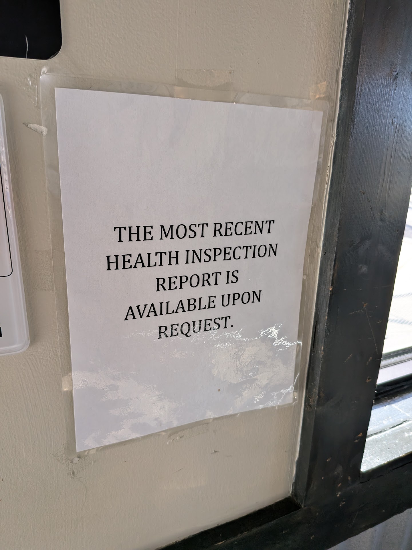 Many restaurants prominently display their most recent health inspection report, but this parlor does not. Furthermore, after our own investigation, we were unable to find any inspection report for this business at city hall. This lack of transparency raises significant questions.