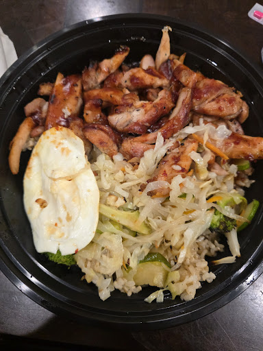 This business expects you to order from your phone app unless if you're not paying with cash. They only want you to order at the register if you're paying with cash. They provide the QR code to order from your phone or from one of three tap screen menu boards (only one of the three was working) so there was a line to order from the boards, but no line at the register and the employee just stood there waiting for cash orders. It was awkward since I had to wait for the one working menu board to be available thinking it might be quicker than ordering on the app but not wantingto installanother app. Only the menu board provided exactly which ingredients were in the bowl. They have a picture menu available but no listi of ingredients. You're asked which type of rice or no rice, veggies or no veggies, etc. I found three bones in my chicken and pork bowl. That decreased my enjoyment of my food and my first time being there (the ordering system was already enough to decrease my overall satisfaction) and to decrease it further - they had Diet Coke as their only sugar free soda. I prefer Coke Zero. Their Fuze unsweetened tea was passable though. The servings were enormous. Too bad there were the bones in the chicken. My kids and I had been lured there by an ad on my map app... We were drawn in by their name. We'd wished it would have been better. We're not planning on returning any time soon. It was far...