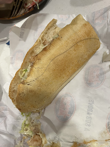 1.) There was a long line of people waiting to be helped. We were all waiting for service for a little over 5 minutes while the employees stood around with lost looks on their faces. 3.) There was one person manning the meat slicer, one preparing about 8-10 subs. One standing by the register not making eye contact with anyone or helping the one person making the subs. There was one person manning the grill while two appeared to be lost and unsure of what to do. With the amount of staff, I was surprised they had messed up all of our orders. 2.) They messed up my boyfriends order as well as the couple after us by giving my bf and the couple behind us in line a half wheat and half white sub as my boyfriend had asked for a wheat bread sub and the couple behind us asked for a white sub. When he opened the paper wrapping to his sandwich, his sub was completely soaked in fixings. It was so soggy that everything had fallen apart. They also forgot to add bacon when he had asked three times to get it added but was still charged for the missing bacon. 3.) I had ordered a chicken Caesar wrap. When I opened up the paper wrapping, my wrap was drenched in Caesar dressing inside and outside of the wrap. I wiped the access dressing from the outside of the wrap (tortilla) with a napkin and only half of the wrap had chicken while the rest of it was just lettuce and dressing.