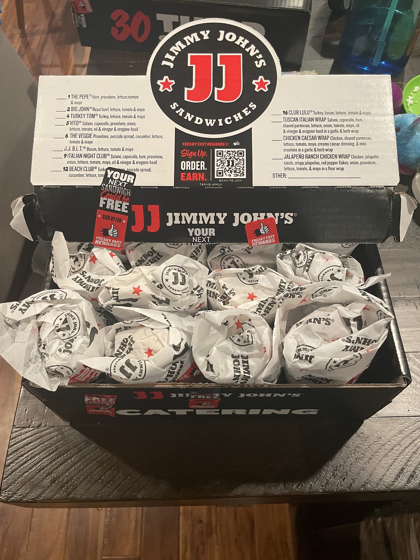 I placed a catering order a week and a half in advance. When I got to the store after the original pickup time they gave me part of our ordering saying it was our complete order. Then they said come back in an hour, stating the reason they could not complete the order was because they ran out of bread. I came back an hour later and it was still not done. I tried to talk to the staff, including the night manager, and they just ignored me and if they didn’t ignore me they didn’t have any good answers as to why it was taking so long. When they gave me part of our order the sandwiches presentation was sloppy and fully wrapped without any indication of what kind of sandwiches they were. I finally got so frustrated with the lack of communication we had them refund the order (I have not checked my credit card to see if that actually happened yet) and kept the sloppy sandwiches that were provided. This was for a 6 year old’s birthday party the next morning so we had to quick pivot and order Davanni’s sandwiches. We spent extra time to make the Jimmy John’s sandwiches look presentable at the bday party when the expectation was to be able to just open the...