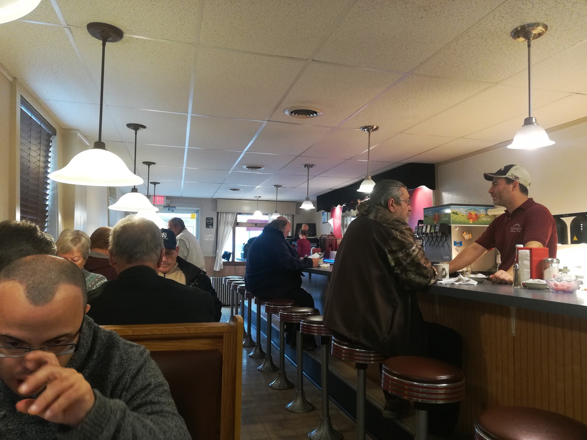 My grandmother and I visited to have brunch together on Thursday Oct, 3rd. Despite the small appearance this tidy nook like diner has plenty of seating available. A dozen or more mounted backless stool style seats line the long service counter giving you full view of the open one man kitchen. While the opposing wall is lined with clean comfortable booths for groups. The two of us sat at the half booth/table by the door. Every other booth was occupied by three or more patrons, more than I expected at 11am on a weekday in my small hometown. The cute young waitress was friendly and attentive offering menus, reciting specials and taking our drink order of two coffees within a few minutes. She swiftly returned ready to take our order with fresh hot coffees in hand. My grandmother had eggs and toast and I ordered the Monte Cristo sandwich special. Despite how busy it was our order took only ten to fifteen minutes at most to be made and courteously served with a smile. The french toast bread was cooked perfectly golden to complement the hot lightly fried thin sliced ham and turkey with a proper amount of melted cheese in the middle and a side of potato chips. Everything was delicious from start to finish. Our plates were promptly cleared and she offered us more coffee before bring the receipt. The total bill was reasonably priced around seventeen dollars for just the two of us. I will definitely stop...