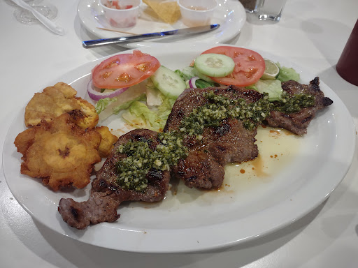 Read moreMet a friend here for lunch. We were served tortilla chips and 3 small bowls --cilantro sauce (delicious, and I don't care for cilantro!), chunky tomato salsa, and a carrot/onion salsa. Interesting and unique. We had heard that portions here are enormous, so we opted for the lunch menu. She had the tilapia, I had the steak. Rice, nicely seasoned came with our meals, along with lettuce, tomato and a cucumber slice. We both selected the jalapeno sauce with our entrees. I was worried it would be too hot, but the jalapeno was subtle, and tasted very good. The menu described cabbage, they must have been out of cabbage. Not a big deal. I had plantain strips, my friend had the overripe plantains that are deep fried. My mango lemonade was very good. My friend had a cacao drink--very delicious, very sweet. We enjoyed sharing a piece of flan. Wait staff was very pleasant, attentive and helpful. The restaurant was spotlessly clean. Prices reasonable. Get a to go box as even the lunch portions are plentiful. Will definitely recommend to others and...