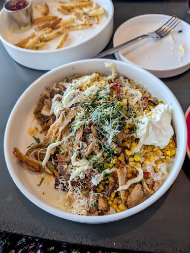 The food was EXCELLENT! I had a Street Corn Chicken Bowl, my daughter had the kid's pancakes with tater tots, and my husband had the burger and chips. We also got the parmesan garlic fries to start. We have only the best things to say about how the food tasted, and about the service. My daughter said the pancakes were the best she's had.