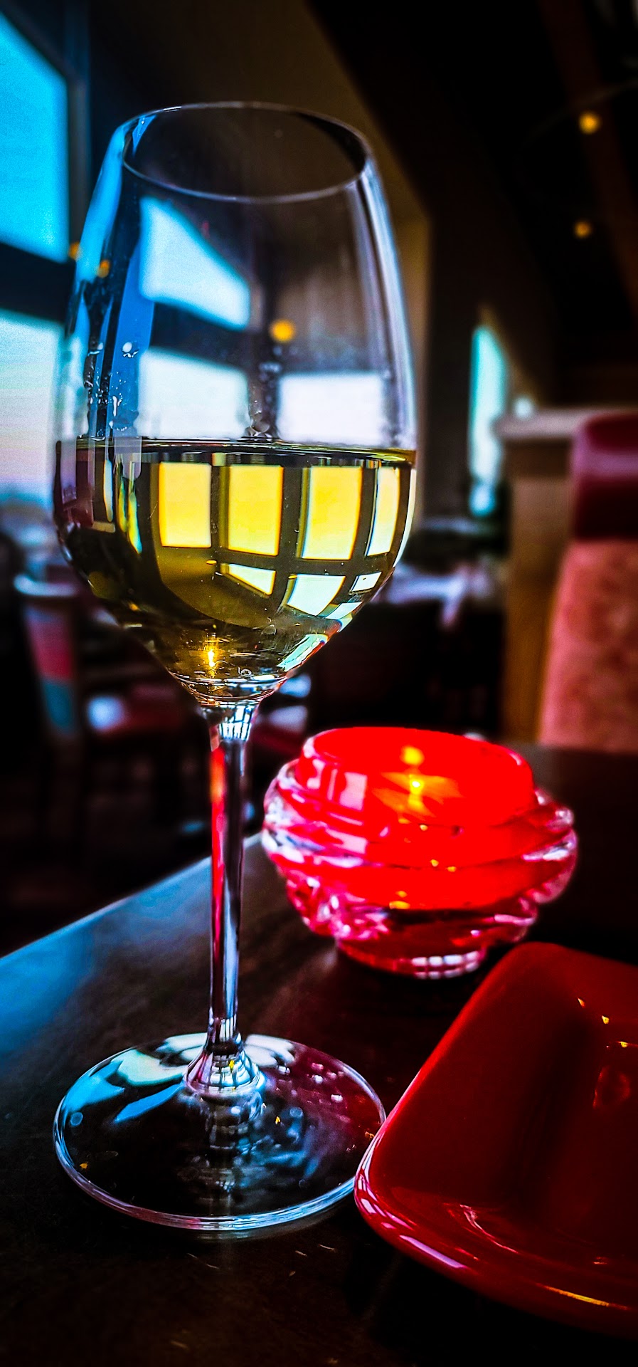 Setting was very nice and very clean. I liked the aesthetics and could imagine the sunset looking very nice through the windows. I think it was a tad dark but not in a bad way. Setting overall was amazing and I think outdoor seating in a warmer season would be perfect.