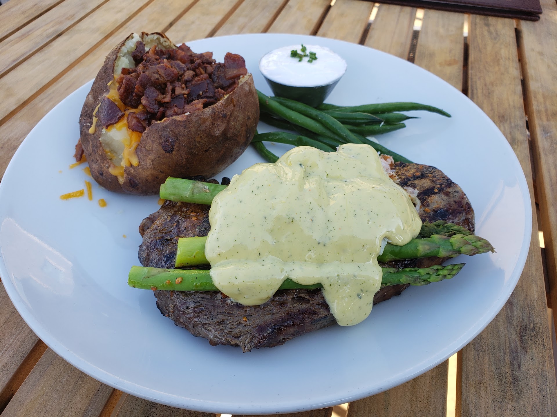 I got there at around 4 PM and it was not too packed. To my left were 3 tables being served as well so I expected my waitress to be a little busy. The scenery was the first thing I noticed; the view of the pier and the boats parked made this restaurant shine. It's a whole different view in the cold weather. Very nice sunset came by.