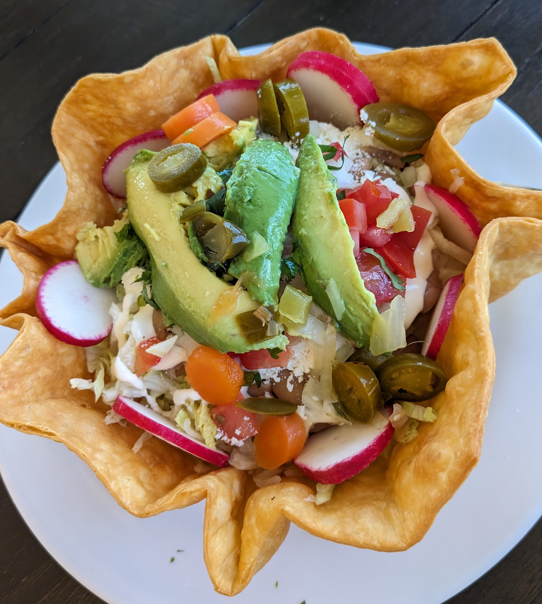 Absolutely fantastic Mexican food, with good sized portions and authentic fresh ingredients. Everything is made from scratch (including the tortillas) and you can taste the quality and effort that went into it. My mom and I both felt that the taco salad was probably the best we've had. Loved that there is a good variety of options for vegetarians, as well as menu options you won't find almost anywhere else local ( tostilocos, chicharron & elote preparados, Hawaiian quesadillas). They also have a rad drink menu with different ornate topping options. Really enjoyed their sauces (the avocado green sauce was the favorite at our table , the red was flavorful with a nice level of heat, and the salsa was quite spicy but I love spicy so I enjoyed it immensely). I'm also a sucker for habanero pickled red onions, lots of radish, and a nice serving of avocado slices, and every dish had this. I will 100% be...