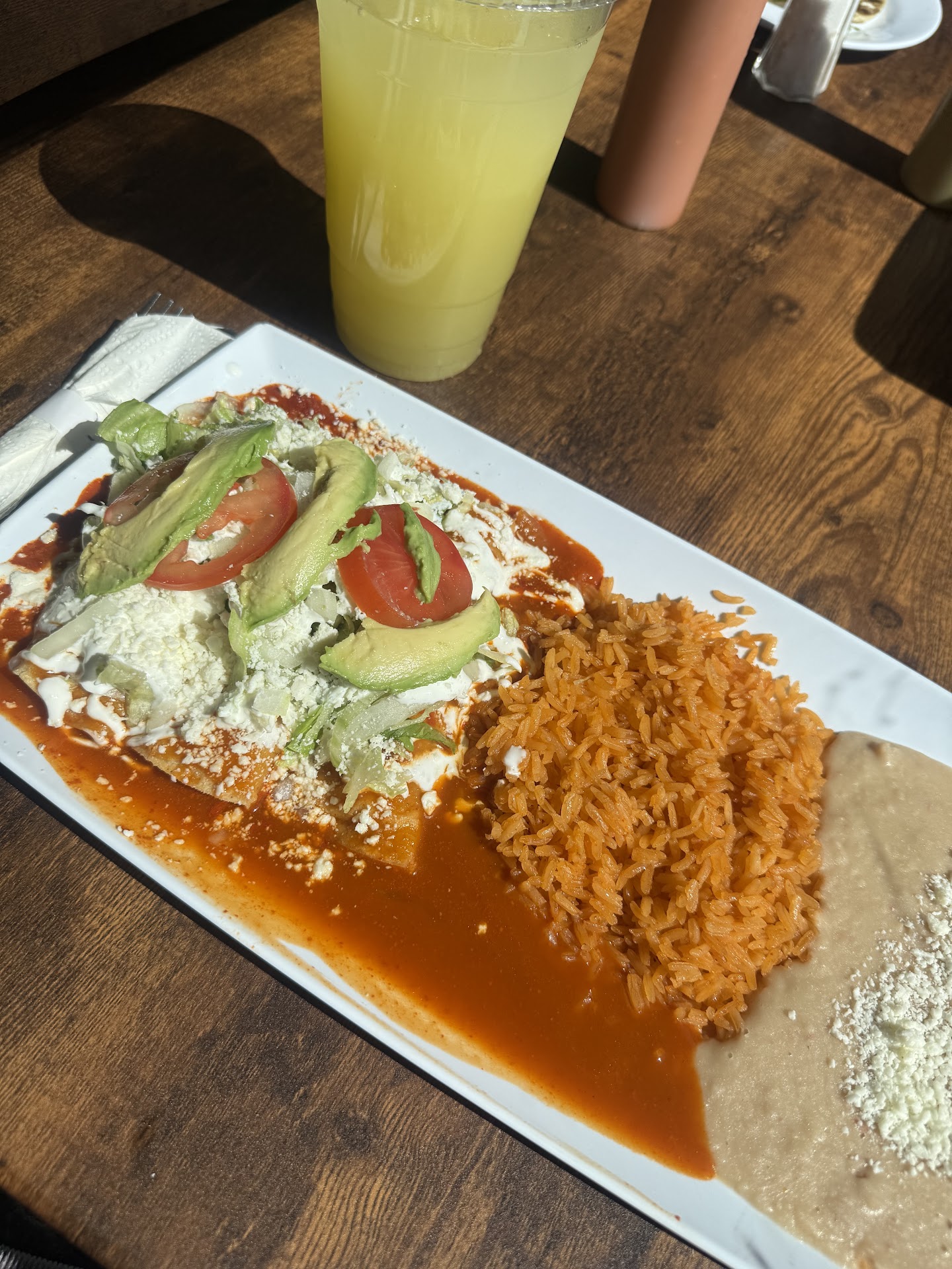 Read moreSome of the most flavorful and best comida Mexicana I’ve ever had! My partner and I walked in and were immediately greeted with smiles and a “buenos días” I got the three red enchiladas with a side of rice and beans and a agua fresca de piña, and my partner got two chicken tinga sopes with an asada taco and a agua fresca de pepino. The food was completely authentic. Homemade tortillas, and the agua frescas were so refreshing. The music was also great. The atmosphere of the restaurant made us feel like we were at a Tia’s house eating on a Saturday afternoon. Highly recommend, if you’re looking for authentic flavorful Mexican food. We will definitely...