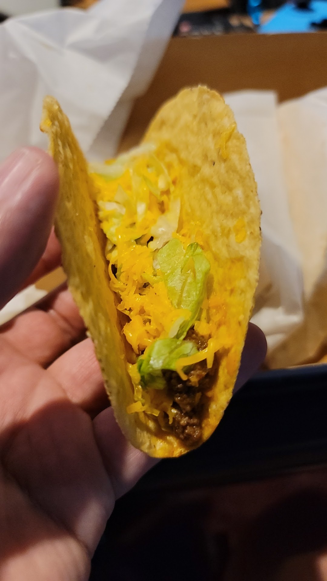 Read moreFirst time trying Del Taco. Saw Nick Avocado do two back to back mukbangs and both times everything he got looked so good even though I am not a taco kind of person, so decided to give them a try since I know for a fact Taco Bell is out for me, they are yuck. I ordered the Del Taco, Crunchtada Tostada, a habanero chicken soft shell taco and the 3pc chicken strips w/fries. Having my own little personal mukbang. What I can say for sure is I accept that I do not like tacos. I keep thinking I haven't found the right place where really good tacos are made, I try to follow the crowd when I hear them rave about awesome tacos only to leave disappointed, but now I'm just certain I don't like them. Here at this place the cheese was funky. Tasted too artificial. The Del Taco is a step above Taco Bell, but really almost any taco joint is. I did like the crunchtada tostada and if I do ever return to this place that's what I'll get again. The chicken habanero soft shell was alright. Better than the hardshell beef taco but not something to be excited about and same goes for the chicken strips. The fries would've probably been tasty enough if I'd been able to eat all 10 (yes, stingy on the ff) of them hot, but by the time I got home they were cold of course. And I asked for hot sauce and got home to find ZERO. Hot sauce should be a given whether asked for or not. Seriously. Lastly. Service was very, very slow. Long line because of this. Over all, not a fan and most likely will not return...