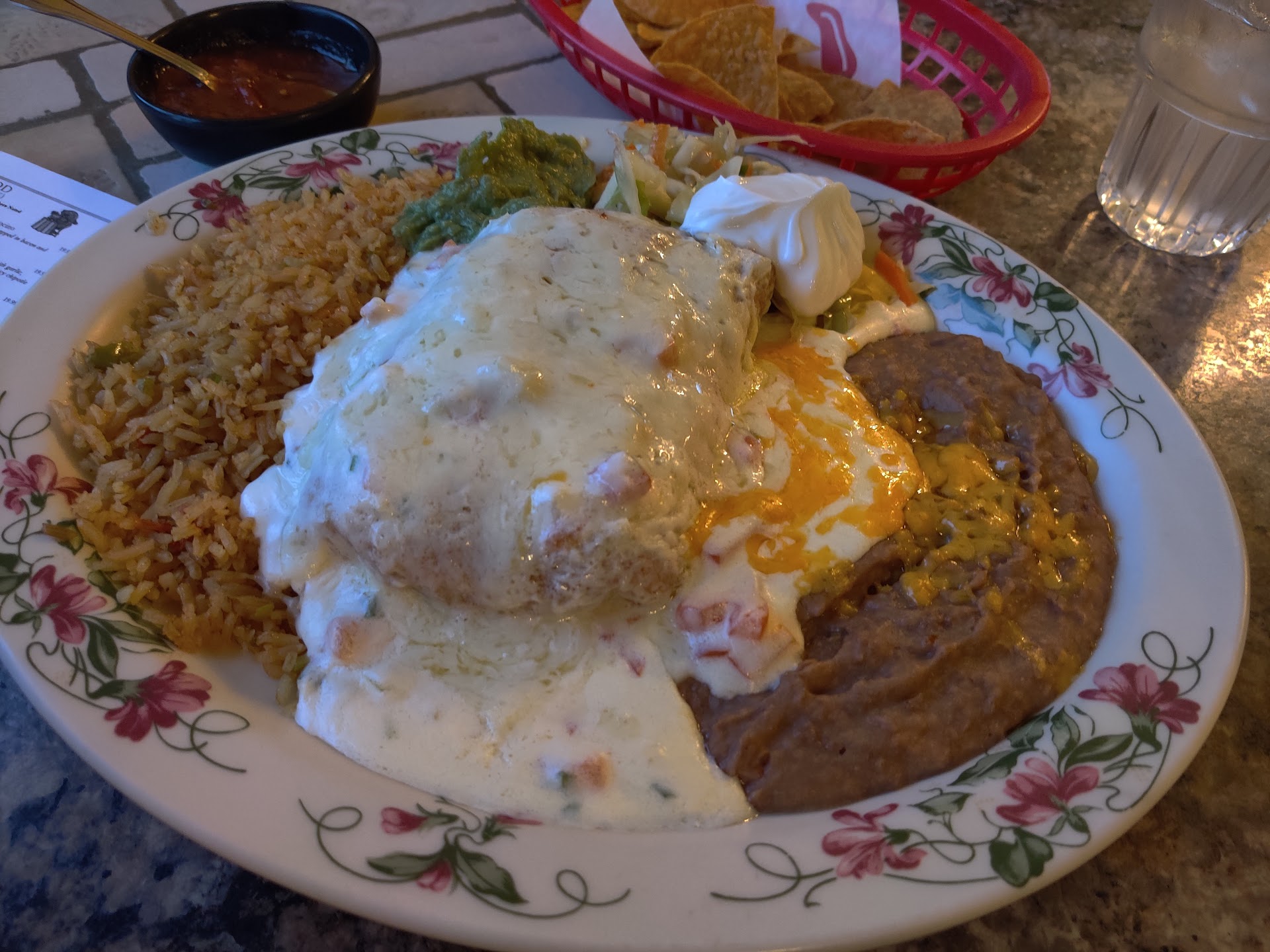 The chips were stale and the salsa tasted... off. They added a "salsa bar" so the waitress no longer has to bring salsa to you but the bar only has very small cups- a style typically used for the sacrament.
