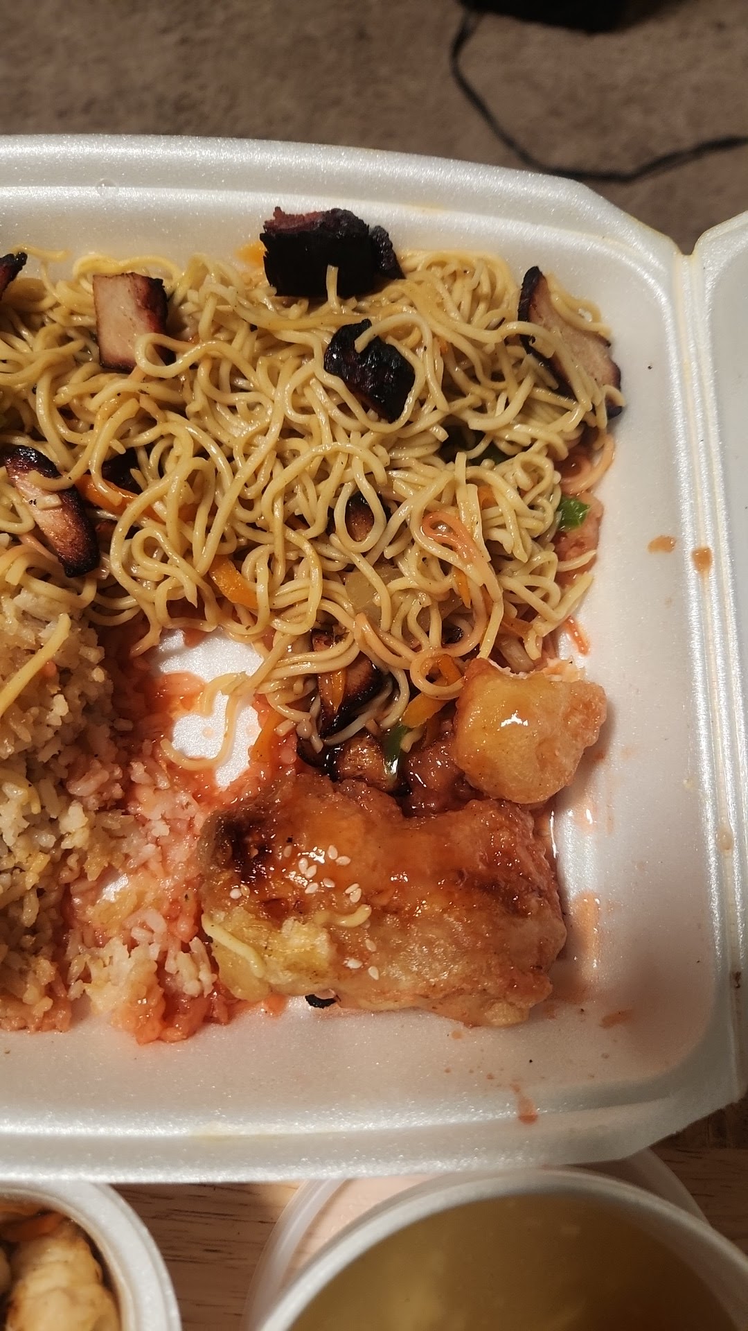 Ā Ā Ā Read moreWow... absolutely just wow.... In the wrongest of ways. The disappointment when I received this on my Valentines night in was overwhelmingly just wow. This is supposed to be fried rice..almond chicken general too chicken and BBQ pork... I also ordered kung pao chicken to be served with rice and soup. No soup delivered, the rice is the same in both dishes so did I get "fried" rice or did my partner get chicken broth rice instead? I looked at other reviews and surprisingly found almost the EXACT same picture as the ones from my meal tonight. This place is not a repeat go to, but definitely a...