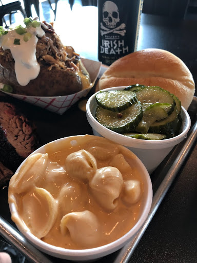 Read moreThe strip mall restaurant is in a nice new building. I write honest reviews and not maliciously crafted to cause harm. Here is our opinion of the experience. The staff was helpful and restaurant was clean. The tables and cheap uncomfortable chairs don't augment a great ambiance. My beloved and I visited today and entered through the north double doors. You are in a cattle chute style access to a bar where the nice staff help with the simple and very small menu. I do mean small because they have brisket, pulled pork, sausage or chicken. A few sides. We chose the pulled pork, hawg sandwich and gouda mac n cheese. The pulled pork was tender. The hawg sandwich had pulled pork and sausage topped with bacon (hope my Cardiologist isn't reading this). The barbeque was served hot and a nice sized serving. This is NOT PIT BBQ. No rub, no flavor, no char and no smokey goodness. Just bland meat. The sauces were the same. We like the taste of taste and in our humble opinion $40 was way over priced for tasteless meat and bad sauce or Heinz 56 or whatever it was. Oh the fountain drinks are good...gouda mac n cheese was bland, no salty flavor, hardly any cheesy love and as for gouda, is gonda. The house pickles were fresh and crunchy. We'll have to drive to Jim Bob's Chuck Wagon in Lacy for some real BBQ. So 3 stars for cleanliness, nice staff and quick...