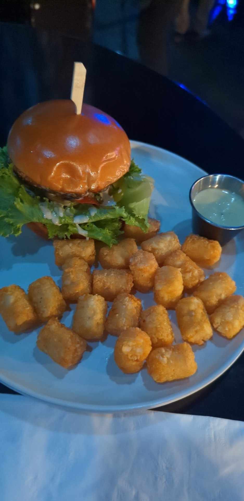 Menu/cocktail menu photos included We had a great time here. The food was pretty good and the service was exceptional. Our server, Ashley, was friendly, thoughtful, and quick in her service. I'm looking forward to going back. The Roujiamo burger was very tasty (can't go wrong with a lime sriracha crema!); and the aioli that was served with the tots was chef's kiss. Our burgers were a bit on the rare side, which I enjoyed, but my friend needed it a bit more well done. They accommadated quickly and kindly so don't be afraid to ask for what you want. I find good service to be rare around here so tip generously and show your appreciation! Also come out and support this TC legend not only for shows but meals...