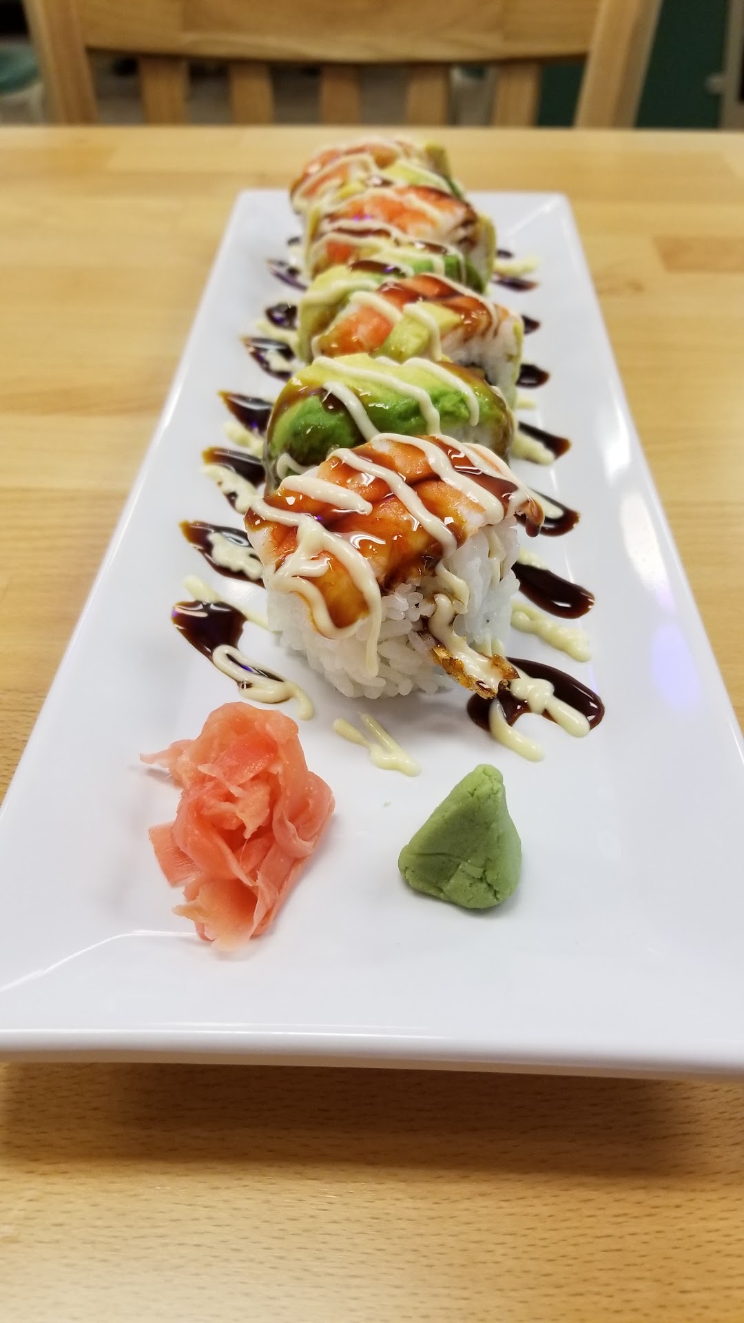 Read moreMy hubby & I came here for a quick bite. We saw the bubble tea sign in the window & we were just talking about them! We tried the honeydew bubble tea,it is like a cross between a milkshake & a slushie with big chewy tapioca Pearl's. It was sweet & fruity, would go there just for those bubble teas! We ordered the Harry Potter roll it is my favorite. Had smoked salmon, cream cheese, tempura shrimp inside, topped with salmon that had been seared a little laid on top. The rice had these little seared spots and gave the roll a smoky flavor profile that complimented the sauce it had drizzled on the side. My husbands new favorite is High School Musical, it also has cream cheese, cooked shrimp & avocado on top, shrimp tempura & smoked salmon. Bottom picture is the snow white roll, the crumbs make it crunchy. Friendly service. The restaurant is in a strip mall next to fujiyamas. The decor is...