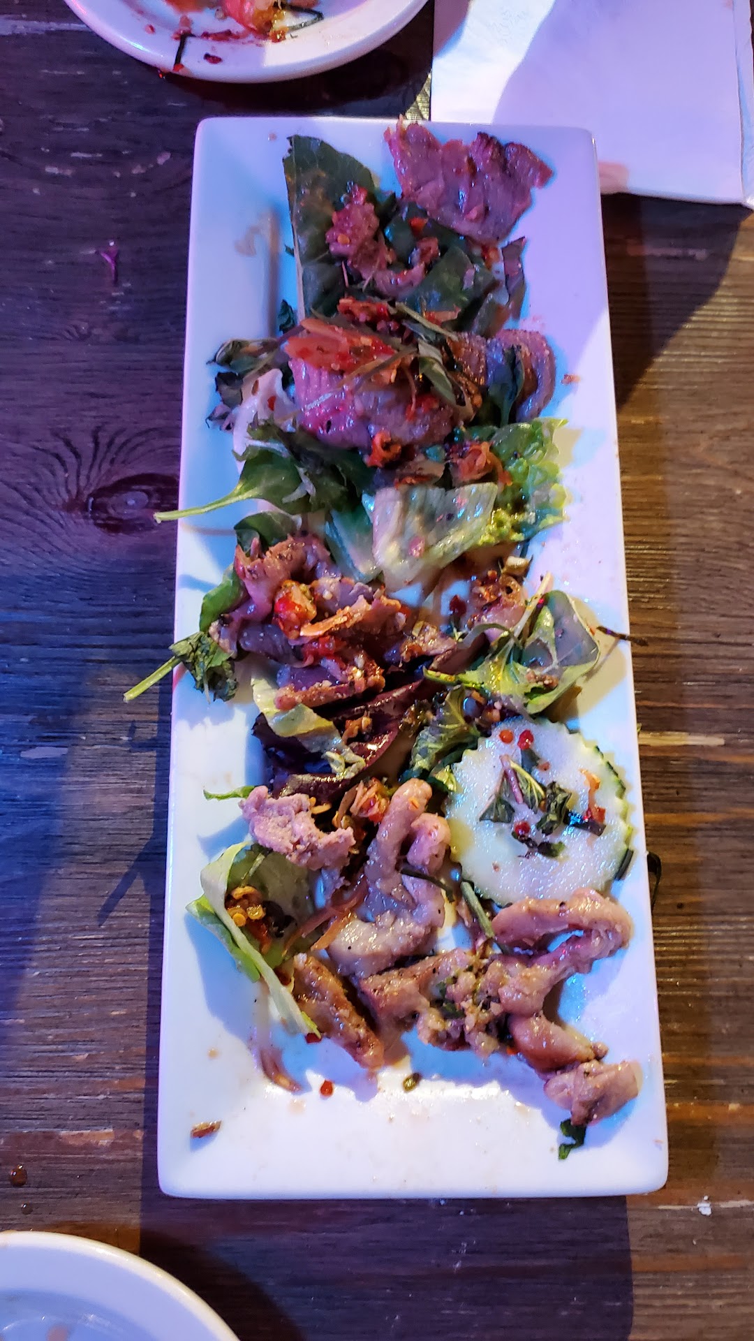 Apps/Small Plates: Cucumber salad - super refreshing! a great companion to the meal Cheese puffs - imagine the best cream cheese crab wonton you have had with a bomb dipping sauce Malaysia Meatballs- so good. the bbq sauce they are in is amazing. Crying Tiger - this steak is so yummy. Can be spicy, but its so yummy with the veggies/cucumber on the side. Korean Hot Dogs - they usually give you multiple different flavors of hot dogs when your order, and they are all soooo good. highly recommend if you have never had one!