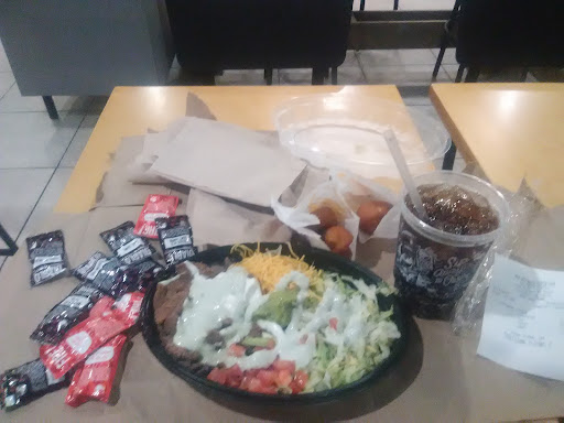 Stopped here on our way home from Florida to get a quick bite and get back on the road. We stopped in the middle of the afternoon on a Sunday and it wasn't that busy in either the drive thru or inside. Me and my wife ordered first just ordering the steak nacho box, 2 cheese quesadillas and 2 bean burritos with no onions. Two other people from our group ordered separately after us then a few mins later a couple ladies ordered after us. Their service was so poor that they couldn't get the orders out in the right order. They were too focused on getting the drive thru empty. When several inside started complaining they started making ours again out of order. The 2 ladies that ordered last got there food first, then the 2 in our group again out of order from who ordered first. They asked to see my receipts which tells me they cleared it off the screen to make their time look good. We did not receive our food until 30 mins after the order time on the receipt. And to make it worse they completely messed up the order getting every thing wrong. The quesadillas were not cut and several of our groups food didn't even have meat in it was cold. I will never stop at this location again because they were so unprofessional. The"manager" on duty was very rude and had a bad attitude toward all customers and was screaming in the back saying" i just might quit this job". AVOID GOING TO...