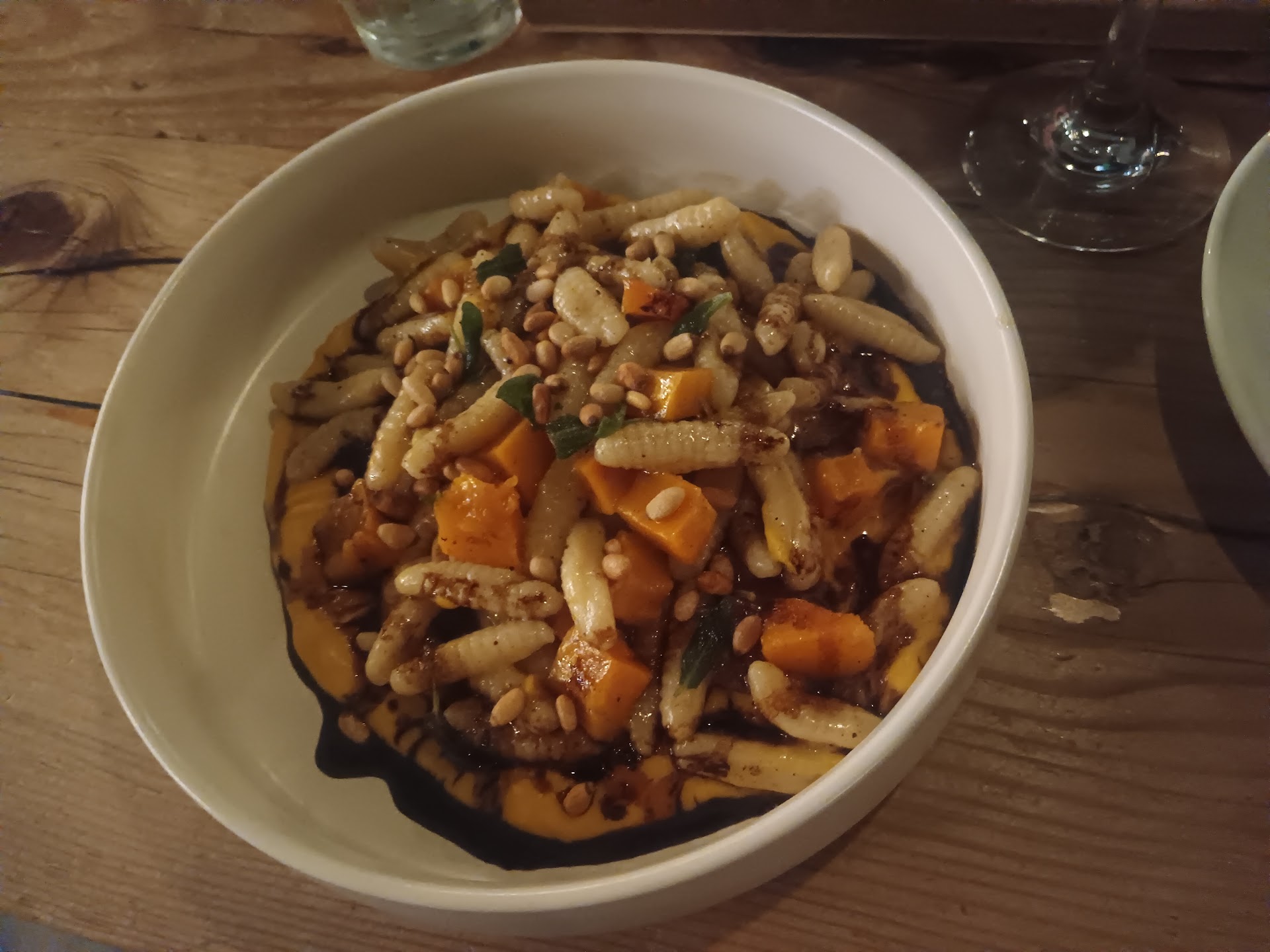 Read morei was disappointed with the service and the food. it took fifteen minutes to get our cocktails, both menu specials, so I know they had everything at hand, AND they had two people mixing drinks; it took 20 minutes to get our appetizer, a charcuterie board that, common sense tells me, took two minutes to plate. the appetizer was a lesson in disappointment that cost me $24. the cocktails were about $17 dollars a piece. I had the 'acts of violets', which was the only thing about my visit that I enjoyed. butternut squash cavatelli would have been better if the pasta weren't overcooked and slimy, and literally looked like some kind of grub or larvae. my date had some kind of cavatelli with a red sauce that tasted like ketchup. the bartender spent 20 minutes chatting with the people at the table next to ours, then ignored us when we tried to flag him down to ask about the drink menu. server played hookie for most of the visit, was rude when she did appear, and only started being nice when she brought us the Bill, apparently ignorant of the concept of working for those tips. I was underwhelmed by the food, the stuck up staff, and the lack of service. the prices weren't higher than I expected, and would be reasonable if they actually delivered on the upscale dining experience, but in my opinion, they do not. It takes a decided lack of either skills, talent, and/or work ethic to mess up TWO pasta dishes and take all of 20 minutes to plate a few pieces of deli...
