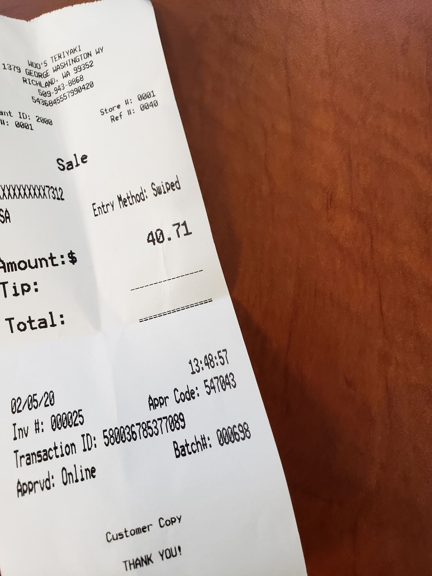 It's a small restaurant in the uptown plaza. We parked almost directly in front of the entrance. This establishment is wheel chair accessible and can accommodate infants and children. Note: Woo's Teriyaki is decorated in Korean American decor however, signage and menus are in English. Our wait staff was quick to usher us to seating. We were offered refreshments (Coke products) and menus.
