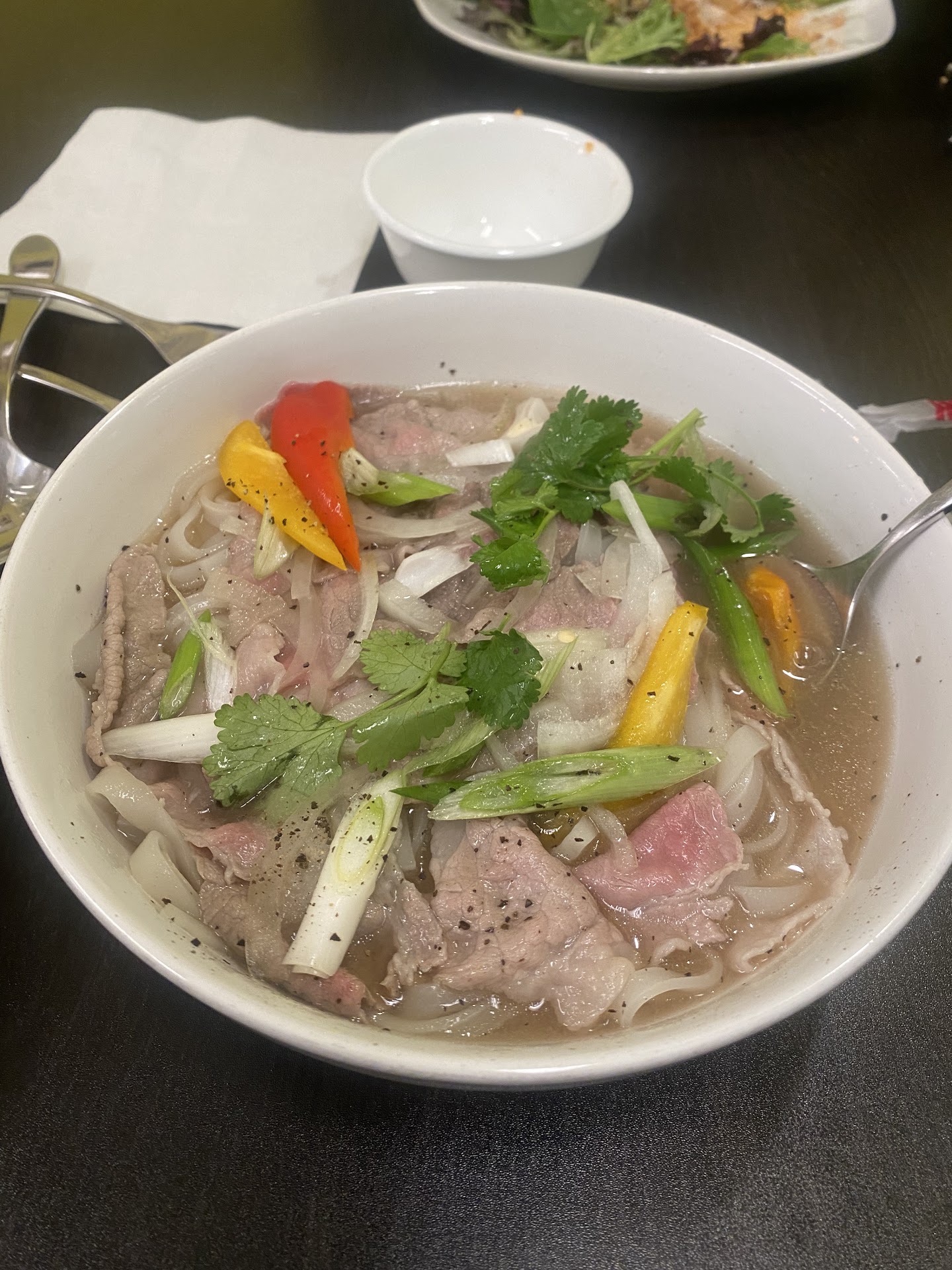 Everthing about this place up to this point was different from any other vietnamese restaurant I've been to, so I wasn't sure what to expect. Once I took my first sip of the soup broth, I loved it, probably near the top of the best pho broths I've had. Lots of flavor but not overpowering. The flat noodles were different, but it was good. Meat quantity was a bit on the light side (i think you can request additional meat, though), and the overall portion of the pho was about average to slight smaller than most places.
