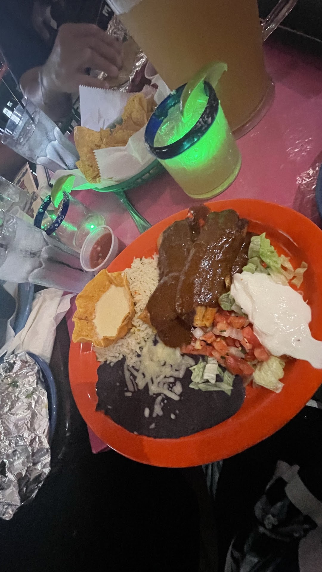 Unfortunately I picked this place to celebrate my birthday, this Monday the 3rd. I wish I hadn’t because it was not the best. Got there around 6, I don’t know the name of our server but he was pretty bad from the get go, showing us his gum as he was chewing. He seemed super annoyed by everything we asked. My friend even told him if you have another server that can wait on us? He said no it’s ok and his attitude improved a little bit. One asked for chicken nachos and they came with beef. Ordered a guacamole that never came. My fried tamales were good but they weren’t fried, they were just as soft as a normal tamal. The mole was good but didn’t taste like mole at all. The pastor taco and mixiote were good. Ordered a pitcher of margarita and tasted nothing but watered lime juice, like it had been sitting there for a while. We sent it back (after the waiter very much showed his annoyance) and got the same thing, we just cancelled the whole thing and tried to order single drinks but then he suggested a top shelf one with no ice which we took and that was actually good. The first ones were just terrible, probably the worst house margarita I’ve had in town. He said it was because of the ice as they’ve had that problem before, then if that’s the case why keep doing it that way? Is it because pitchers were on special that day? I’d rather pay full price but get something of quality.