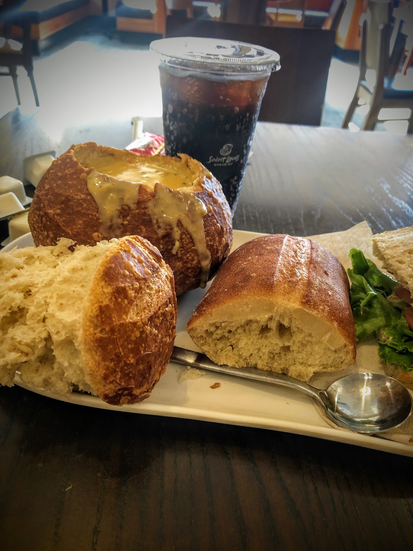 Read moreSo I love Bread Co. No matter the location, the food is always top notch. However, I'm writing a review of this location specifically because of recent experiences I've had here. Every time I've come in for lunch over the past two weeks, another customer, an older man, usually wearing a gray beanie and sweatshirt, is always here and ALWAYS stares at me and other female customers. As in, he sits there, not looking at his phone or his coffee, and just stares at women in the seating area. Every time I glance up, he is staring at me. I've been sitting in the seating area for the past few hours finishing a paper I have due, and I have caught him staring at me so many times that I even got recordings of it (not attached to this review for his privacy). Even if I deliberately move to a spot where he cannot see me, he pointedly moves to a spot where he can continue staring. I'm leaving a review about it because when I brought this up to a few friends in casual conversation, EVERY ONE OF THEM KNEW WHO I WAS TALKING ABOUT. This is evidently enough of a problem that an entire group of people experienced it individually, but also when another female customer left at the same time as me this evening, I asked her on the way out the door if she noticed it; she also had noticed and thought it was creepy. I'm not suggesting that this is Panera's fault, but women be warned: don't come to this location if you don't want a man staring at you the entire time you're...