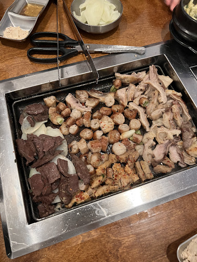 Read moreI came here with some friends and it was so delicious! We had the Stone Pot Bibimbap, Spicy seafood soup,potato pancakes, and the A Set. The customer service was amazing and they grilled the cow innards for us and it came with delicious dipping sauces! So so so good!!! My first time trying cow intestines so I was a bit intimidated but our server was great, she explained all the different parts to us, suggested which sauces to dip. I'm DEFINITELY going back here to have cow intestines again haha. They also had lots of different korean beers and alcohol so I wanna come back to drink🥰 Great music, atmosphere, AND a cool feature is they have bells on each table to press if we want to call our server and it makes a MOOOO sound like a cow😅😂Love that small detail though hahah. Favorite korean restaurant in...