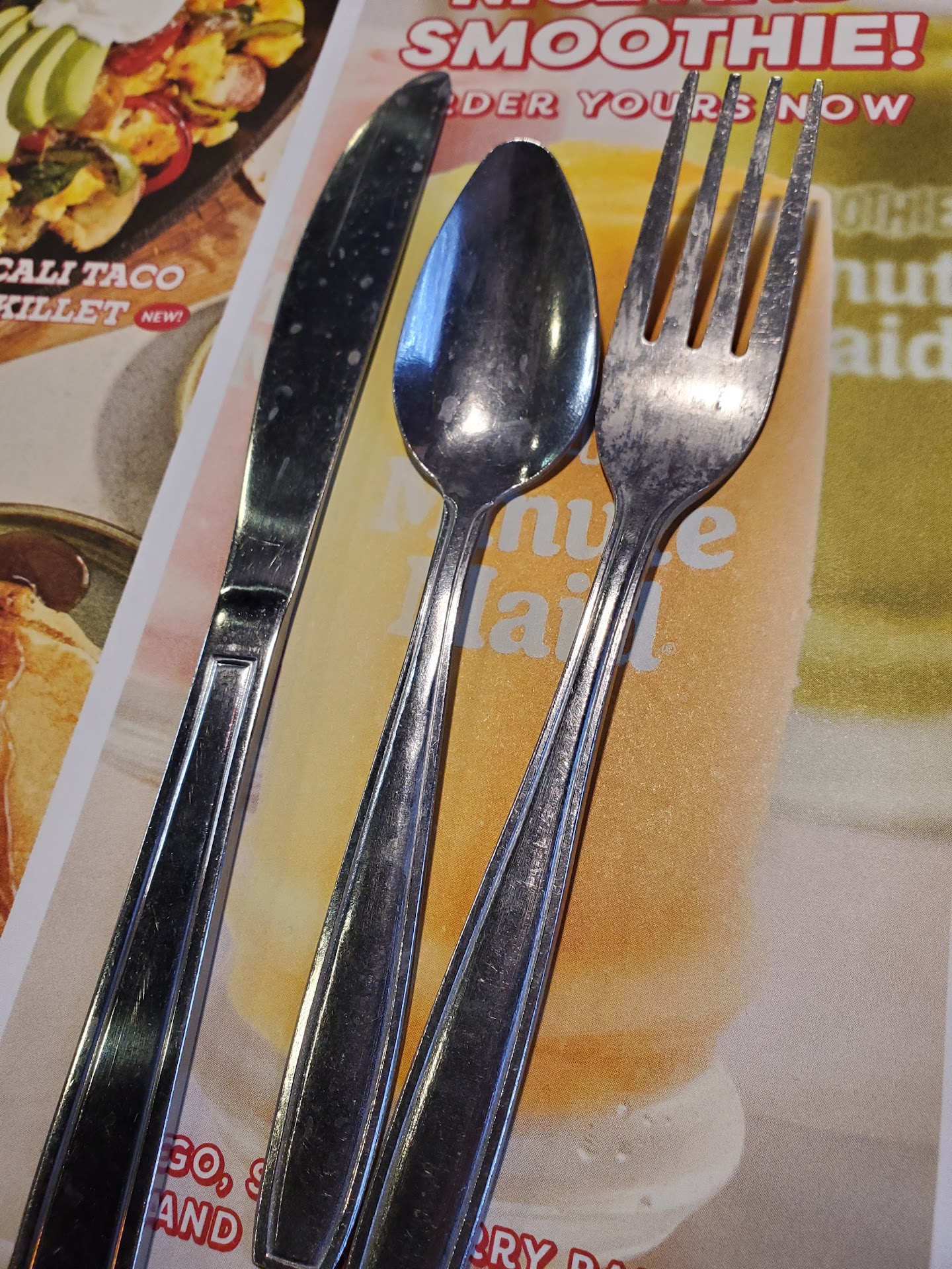 Read moreWe visited last night around 1030pm. Apparently it was after a high school football game. It was lots of wonderful kids that were well behaved and respectful. It was refreshing. The place was packed! The staff consisted of 2 waiters for the entire place. They had 3 cooks! It was absolutely ridiculous! The cooks were doing all they could do but the waiter and waitress were completely overwhelmed! They completely ran out of utensils! The general manager needs to plan better! We patiently waited but didn’t get food til about 11:45pm. Our orders were to go orders! Meanwhile, we sat at the bar the tv was on Fox News and I asked could they please change the channel. The waiter said the general manager doesn’t allow them to change the channel nor adjust the air. I said Fox News is inflammatory screaming all sorts or race baiting statements! Trumps on tv inciting people at a rally and we have to sit here and watch this!!!! The restaurant was severely understaffed, the walls have fake wood peeling off with large holes, the air conditioning is leaking onto the floor (trip hazard) and GERMS!!! He should be more concerned with those things! So, in all fairness we came back the next morning since we were camping nearby. They were staffed on day shift. Our waitress Jennifer was great. They were maybe 50% full. We ordered the special the slam. It took over an hour and we were served cold pancakes, cold sausage, and cold thin bacon. We informed our waitress and she offered to get us another plate but we chose not to spend another hour waiting for food. She brought us a new set of hot pancakes which we enjoyed. The manager MOSES refused to discount our meal even though we didn’t eat it. This place needs a general manager retraining or overhaul!!! The two stars are for our...