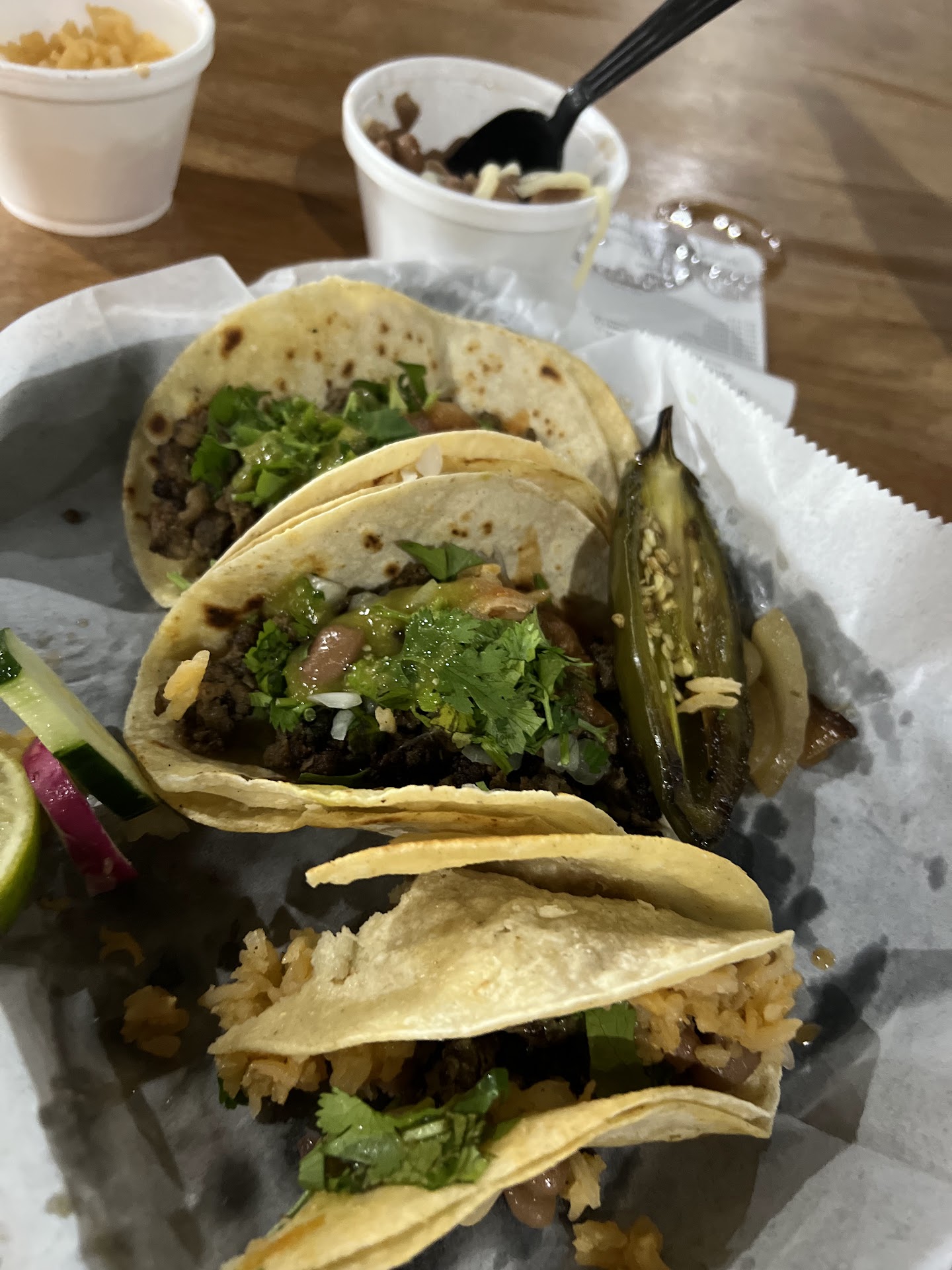 Frankly, the age created atmosphere. The food was good- if you know to ask about the heat level, and it was higher than I normally pay for a street taco but not...