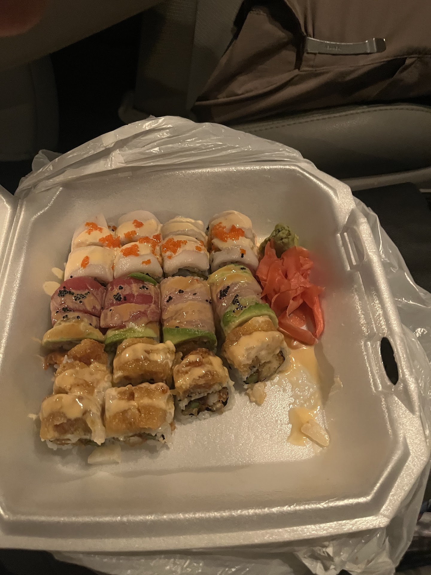 Read moreWe ordered sushi for takeout. The sushi was good but not worth the price for the size of it and time it took to get it. Placed the order at 6:06pm over the phone and was told it would be 20 mins. When I arrived to pick it up it wasn’t ready and had to wait till 7:20 before it was finally ready. It was a Thursday night and it wasn’t even busy, they had two tables, one of which was just placing their order with their server and there was 3 front of house staff for 2 tables. Also, each roll was over $15 and they were very small. I liked the rolls but felt that the price was too high for the size of them. Edit: In response to the owner, there is no good excuse for how long our order took. Look at the time frame I referenced, from the time I placed the order to pick up it was over an hour and on the phone your employee told me 20 mins. If it was going to take longer than that then it should have be explained. I’ve worked in the restaurant industry. I know how busy takeout can get, give realistic wait times so the customer can plan accordingly. We weren’t from the area and we were traveling to NC so yes it really did put us at an inconvenience. Also, you should consider reviewing the online menu and it’s prices that are listed on there. We also tipped and I’m not even sure what for at this point. I’m pretty sure what happened is your employee forgot to put our order in after the call and didn’t do so until we got there. Mistakes happen but there’s a right way of handling them that could’ve saved us this inconvenience and maybe brought us back in...