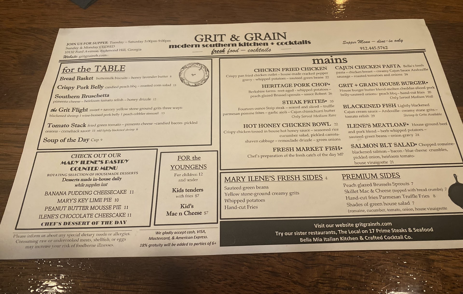 We’ve been here twice before and had good experiences. We were looking forward to taking my in-laws here during their visit. I saw where Grit + Grain started taking reservations, but nothing was available for a party of 6 the night we wanted. But, the website in multiple places states they are not required: “First Come, First Served. Reservations available.” “Reservations not required but are available”