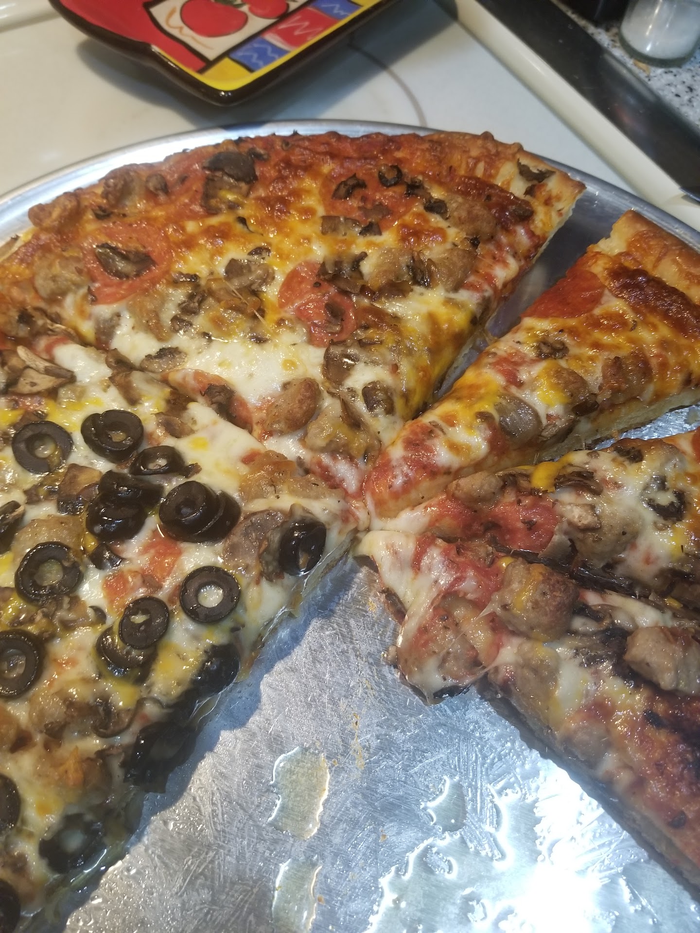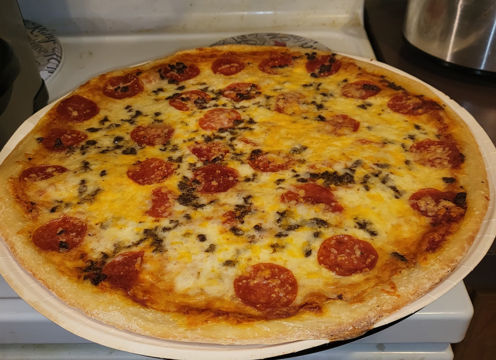 Better taste and price if you go to little Caesars.. Dominos..or Pizza Hut!!!!!