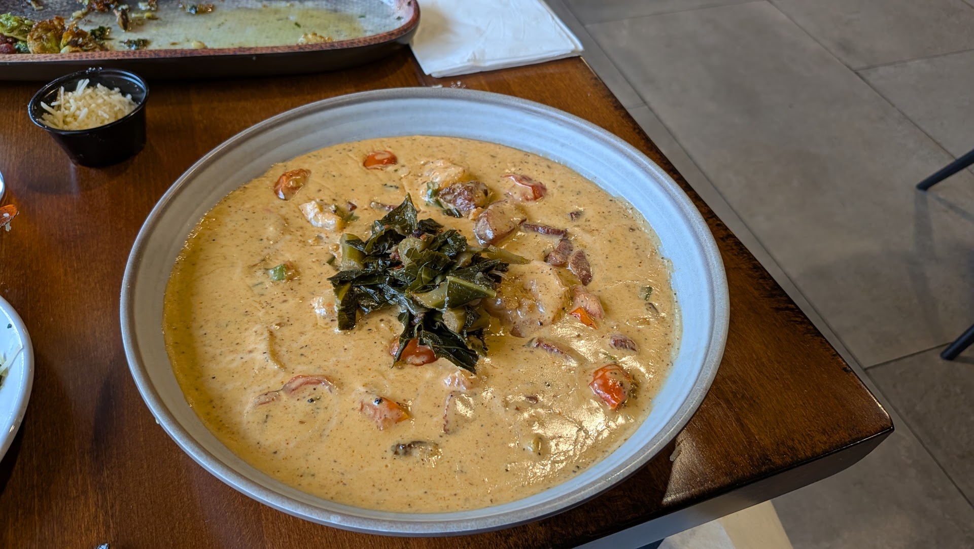I will say 109% the collard greens / bacon dip and the fried green tomatoes (goat cheese crumbles and remoulade topping was epic) were some of the best appetizers Iâve ever had. There were no where near enough chips with the dip, though.