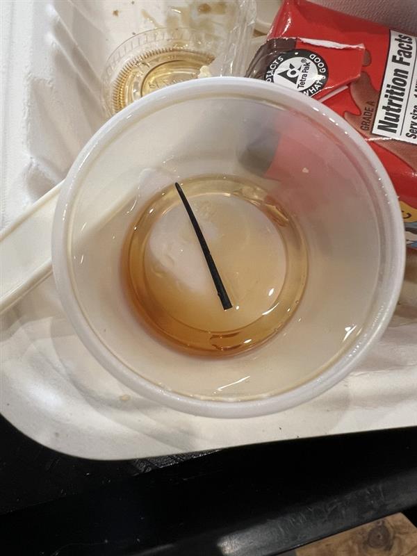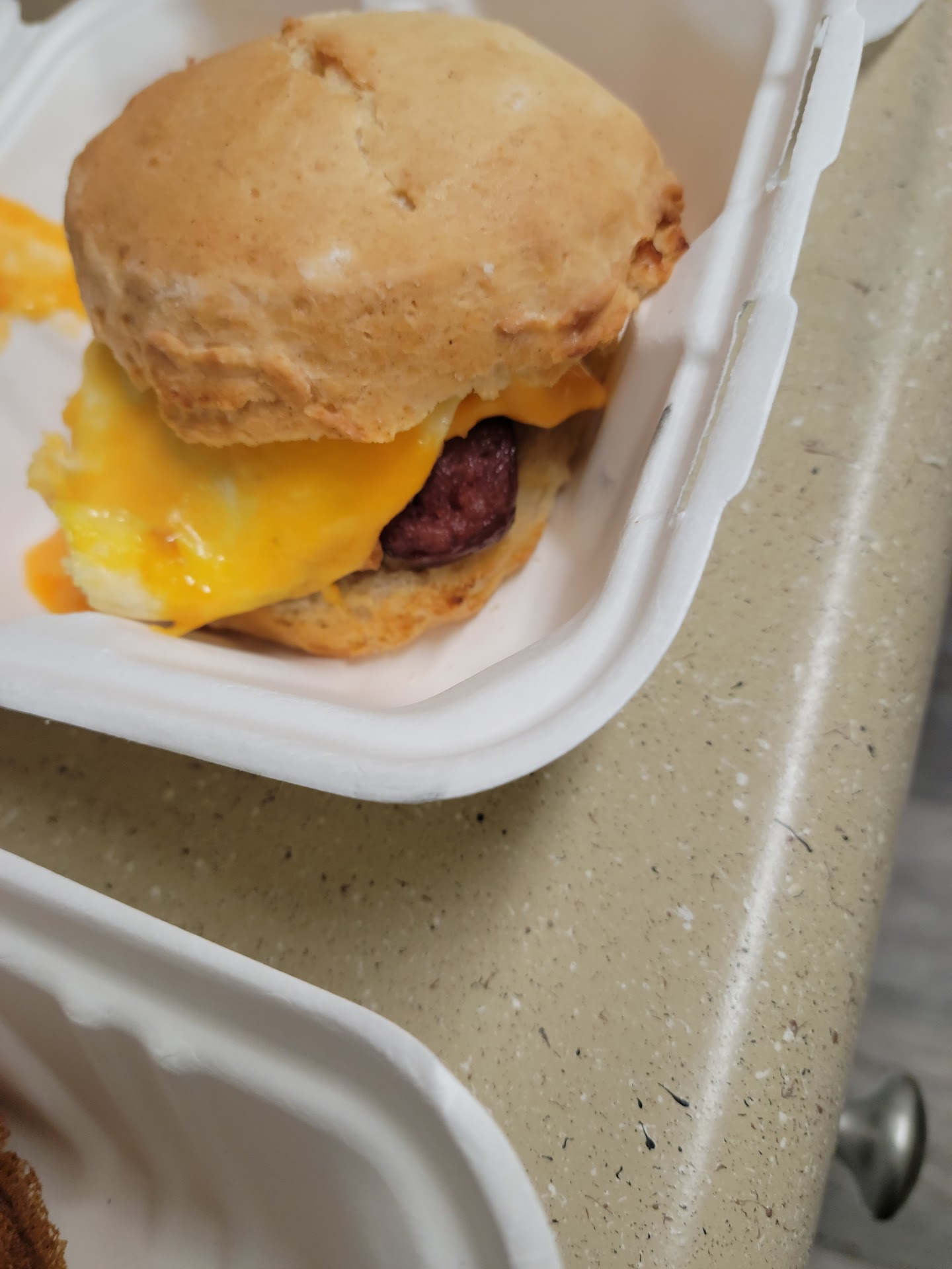 Biscuit: The avocado was rotten, almost all the way through, mushy dark brown. This did not happen in the 15 minutes that the Uber driver had the food in his possession. The biscut was hard on the outside, almost inedlible hard, like when bread is in a microwave too long. The hot sauce was barely on the edge of the sandwich and a puddle in the bottom of the box. There were supposed to be two eggs on the biscuit and there was only one.