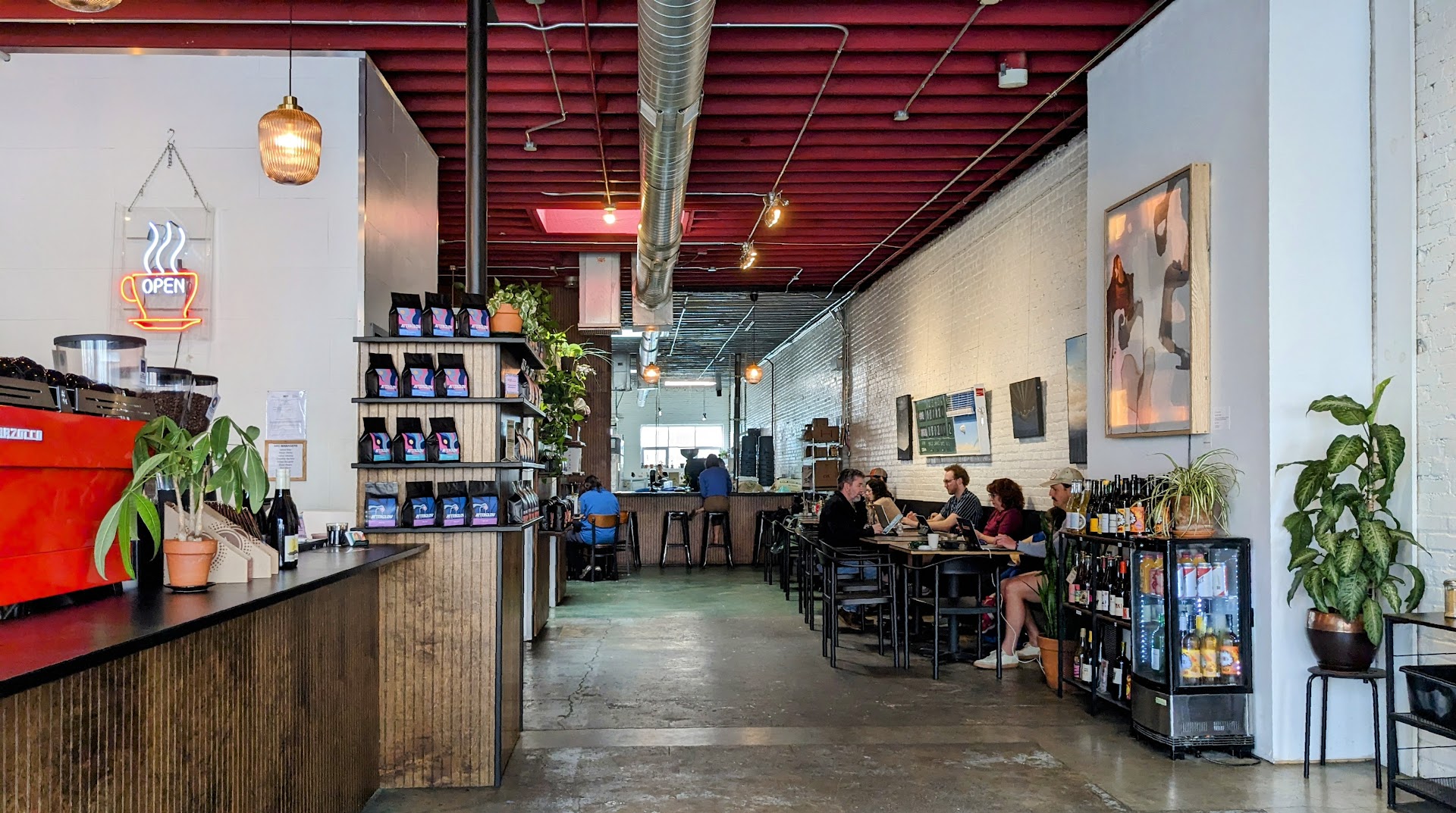 Read moreVery cute local coffee spot! Definitely seems to be more of a working space than a chatting space. Lots of people on laptops sitting at individual tables. I met a friend here and stayed to do some work and ended up making a new friend who was also doing some work! The space itself is quite large for a downtown coffee shop, and feels spacious with the tall ceilings, lots of natural light, and plants. There are a few spots to sit outside as well, and you can see what I believe is the roastery in the back.