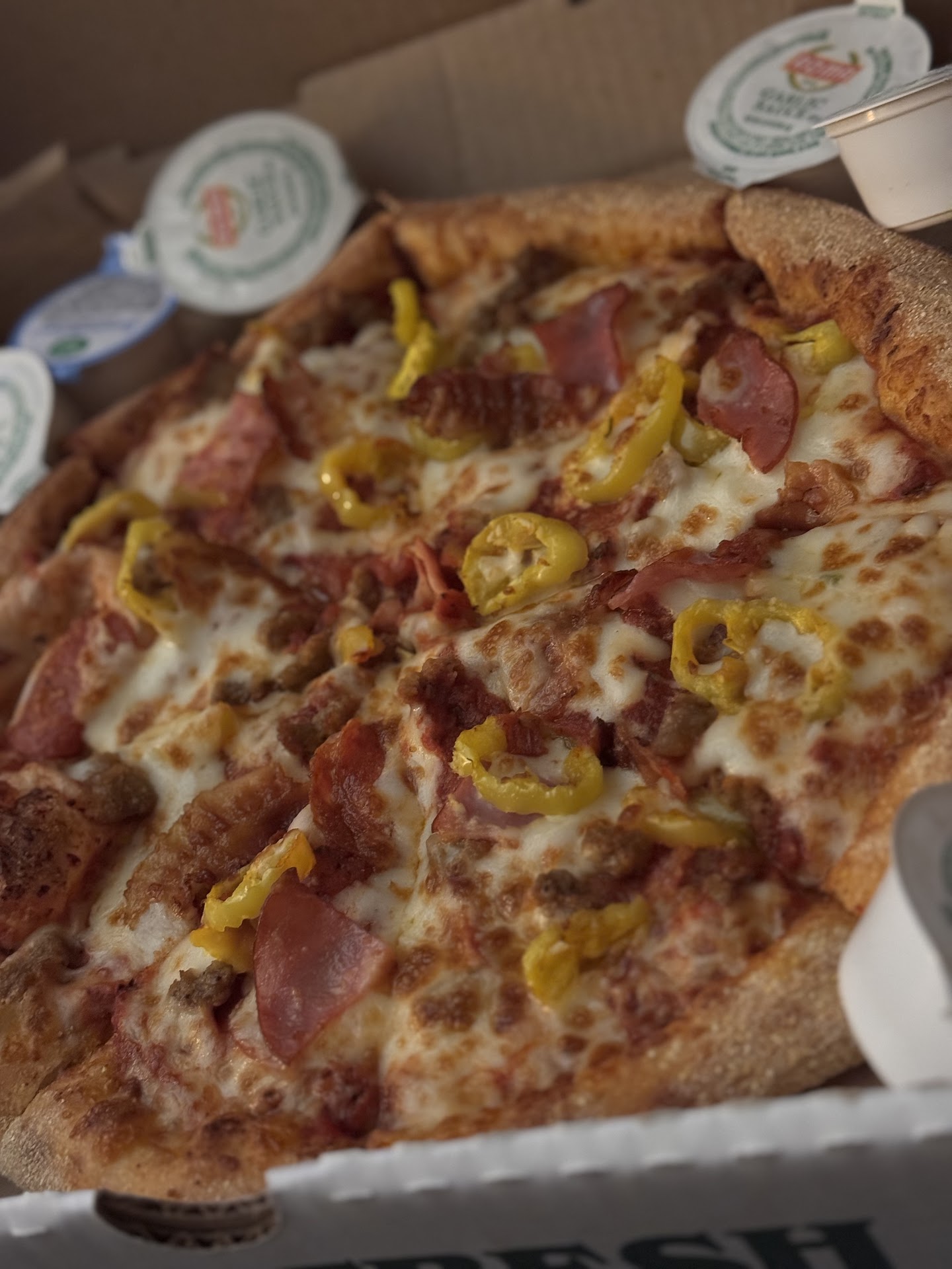 Ā Ā Ā Read moreGuy dropped it off and said āsorry for the delayā even though it was 5 mins late on a Thursday. That kinda threw me off and I knew itād be a disaster. Iād call up but my 6 dollar credit on one item isnāt worth stopping others wasting the money here. Cheesy bread was good... especially after dabbing it with paper towels to get the puddle of grease that settled where the marinara cup was that leaked all over the pizza and heating it myself (clearly it was made in a frier and just thrown in a box). Then I got to my entree gdeluxe philly with ham turkey steak cheese and veggies on it). Their website (that is probably run by Lycos) was made around the time of html and MySpace, let you click ānoā to things! Perfect! Except it just triggered 1 thing and no I have mayo to add to the cheese that I can only call melted āMozzawateryā plus a bunch of other stuff I didnāt want. The minced peppers and onions (larger than the steak) was mixed in perfectly with HALF A BOTTOM BUN soaked to the brim, with everything falling out. A masterpiece only McDonaldās would be sorta proud of but still shake their head at.
