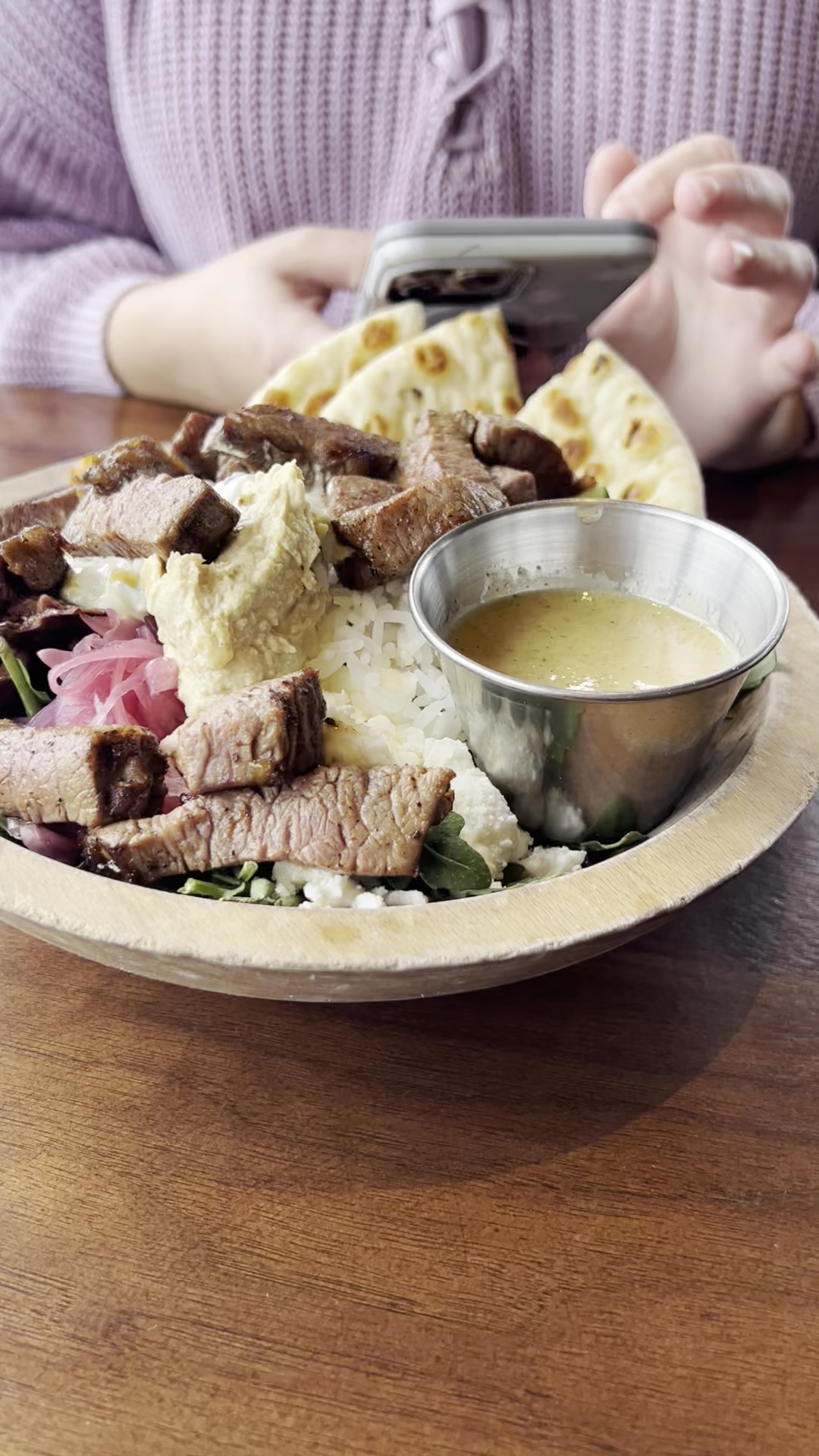 One slight annoyance was how the bill amount was presented without an ability to see or review the receipt. The amount, presented electronically didn't seem to have a summary review option. It was disconcerting to not know how much was charged for the second pita, for example. Overall a pleasant afternoon in a nice location 3+ stars for.the food which may be better during...