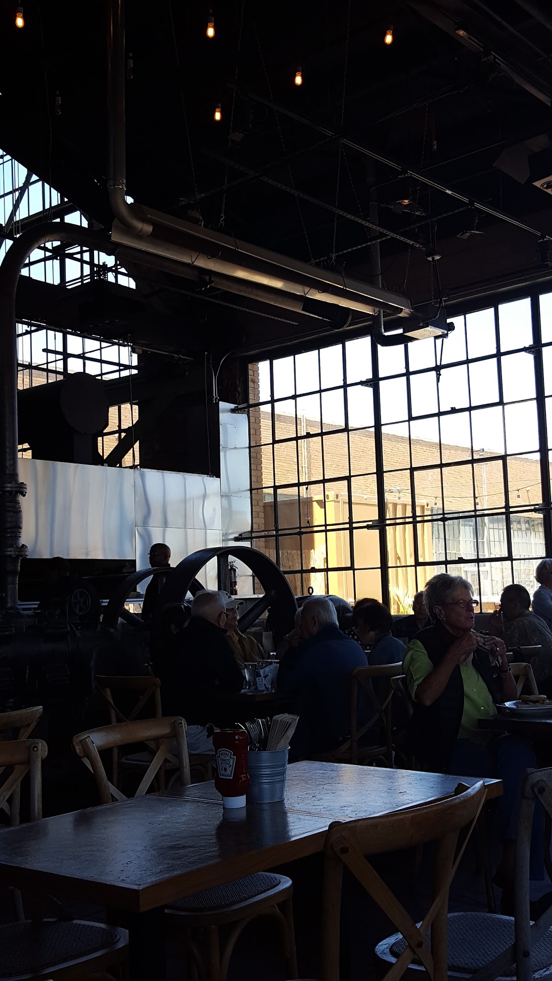 Read moreI really wanted to love this place. My husband and I came here because we were starving and wanted to have a nice lunch by the water before visiting the Rosie the Riveter Museum. We literally stood at the hostess-less front door for 10 minutes. The only two employees that got close enough to where we were standing were clearly trying to avoid eye contact. It wasn't until we finally caught the attention of a busser who, clearly way too busy to look up from what he was doing, unprofessionally mumbled that he didn't know where the hostess was before walking off. I then overheard the two aforementioned employees annoyingly ask each other where 'she' was. Just as I turned to my husband to say, "This was a mistake," the plain-clothed hostess arrived. I had no clue she was even an employee by the way she was dressed in a tank top and jeans (apparently everyone else was required to wear a professional-looking uniform?) until she started to grab menus. She was obviously as equally annoyed as her coworkers and caused me to feel as if we had inconvenienced her by showing up. By this point, we're already at Strike #2 in my book in less than 15 minutes. Surprisingly, the server came quickly to take our drink orders. Our two waters came and we put in our food orders which I think were simple enough: a burger with fries and beignets (accompanied by jam per their menu). The food came quickly, but not as quickly as the server dismissed us after putting our food on the table. She never offered ketchup for my husband's fries, and when I tried to call out to her to ask for my missing jam, she completely turned her back on me and tended to another (a.k.a. bigger ticket) table. The food was mediocre, but in trying to see the silver-lining of this highly disappointing situation, I was really impressed with the view. What a waste of a beautiful and historic building (Ford...