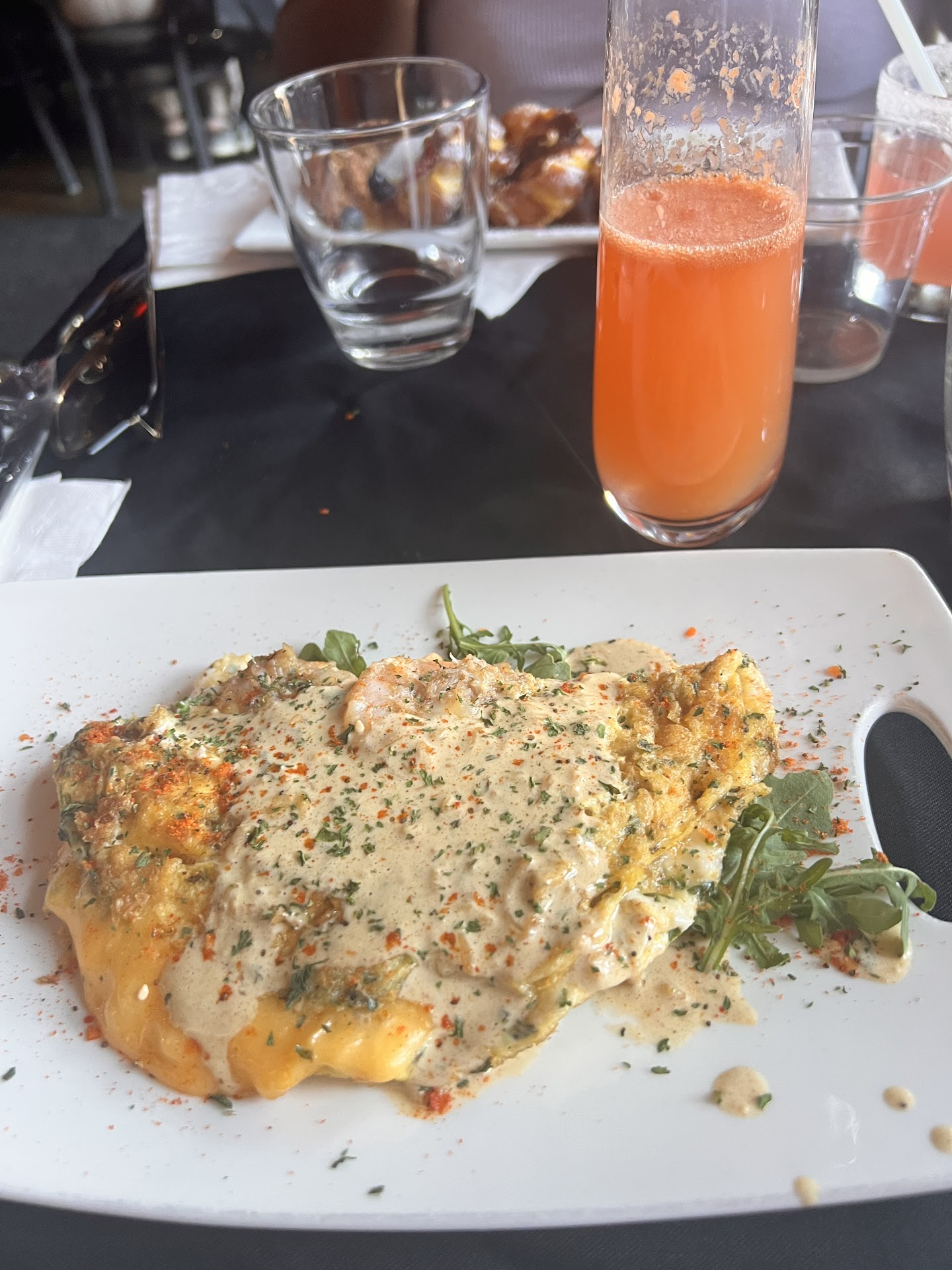 Read morePretty decent brunch spot with major potential. They are fairly new so I believe they will be pretty good once they work out the kinks. Drinks weren’t good for our experience. Lavender Lemon Drop was extremely tart. Requested syrup to help bring the tartness down. Ordered a Strawberry Mimosa but received champagne with ground orange peels instead. When asked what kind of drink we received that waiter stated that they didn’t have the usual strawberry purée so they “chose” to give us strawberry with orange/orange peels instead. You can’t choose what you want for a paying customer. Especially when you don’t know what customers are allergic to. I still drank most of it to avoid a loss and tried to avoid a complaint. The payment process is not great either. When we asked for the checks the waiter advised we had to check out at the bar; however, we noticed the table next to us were able to check out via iPad. When asked why there was a difference the owner(I’m assuming) forced the waiter to come back and check us out at the table. She explained tabs check out at the counter and others can checkout while seated, which makes no sense. They don’t have receipts to view your order prior to paying. Once you type your card information into the iPad “then” they will text or email your receipt. Hopefully, what you’re charge is correct prior to paying. I think a better waiter would have made the experience better but the owner seemed pretty cool and on top of things. He will go above and beyond to make sure...