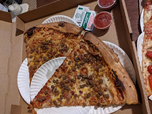 The crust itself was unique to me, it had more in common with a bread that didn't rise than a chewy pizza crust. The bottom was crisp like a thin cracker with a little soft layer above - But it worked! It had a nice flavor and gave good structural support to the massive, banner-sized slices. But that under-proofed bread character took over at the edges leaving them unappealing. Then again, by the time you make it to the outer crust you're either out of toppings or are flat-out stuffed and eating that arc of bread wouldn’t be a sensible option.
