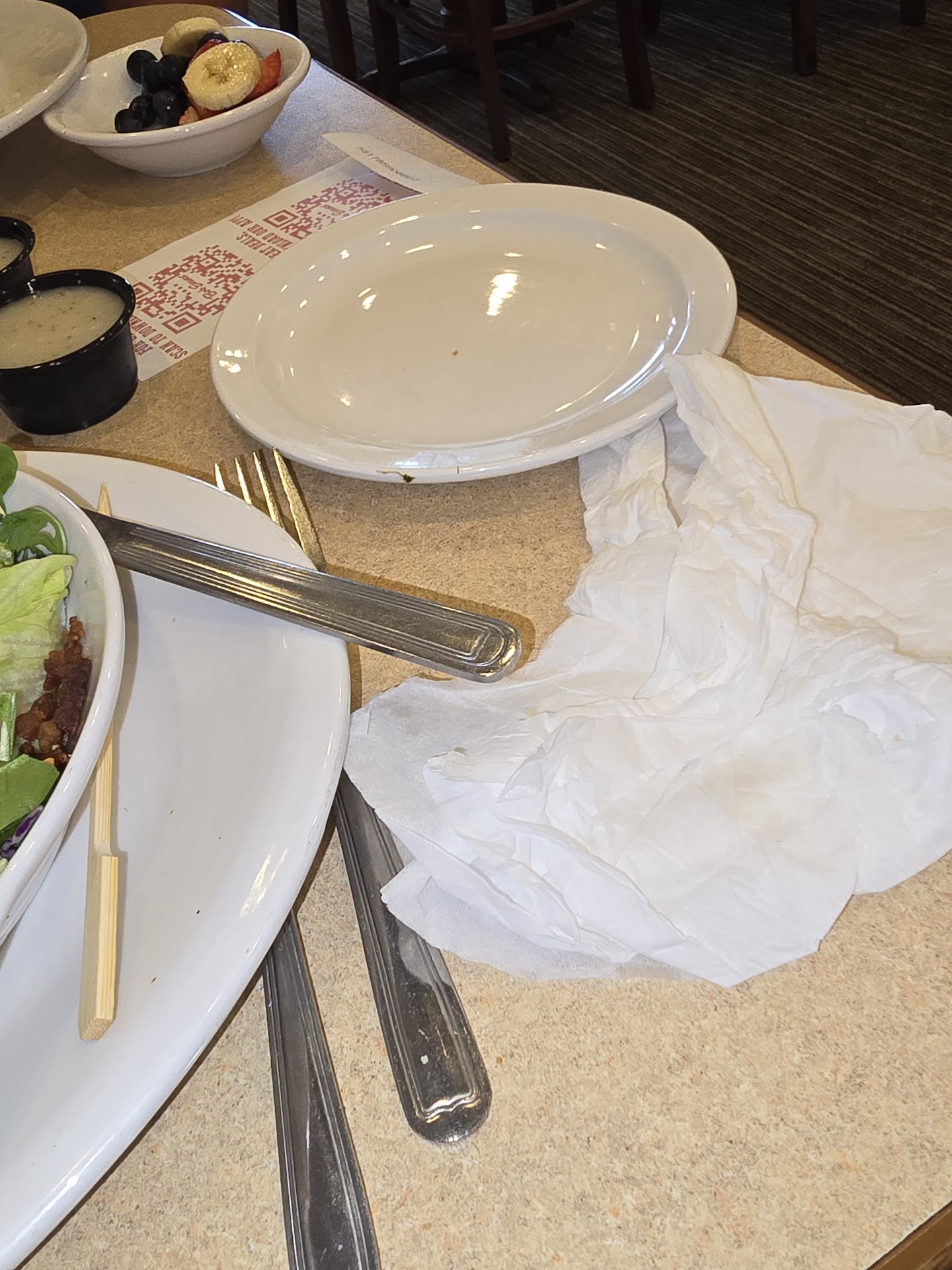 Read moreThe food was good, our server was nice, but service was slow. Not by any fault of his own. The place lacked team work!! We walked in I am guessing at shift change over, as a result we were the 1rst of 8 tables being sat every 5 minutes. He was the only one addressing tables. Meanwhile several other servers, walked passed our soups, that sat in the window for 15 minutes, before our other food was sat up in the window, and sat for and additional 8 minutes . Servers just walking by it looking and walking away. I seen two managers " I assume" come from the back to the service area, continued chatting, the one went around to inspect tables so the servers could leave, and the other nonchalantly got our food together, trayed it up and waited for our server to bring us the food. Our server took our order, put our food in , brought us our drinks, rolls, banana bread, and then couldn't make it back to us for 25 minutes. After he brought us our food, He came back with refills that sat empty for 10 minutes, and the check. Not one of the 7 other employees that were visible in the dining room, helped the...