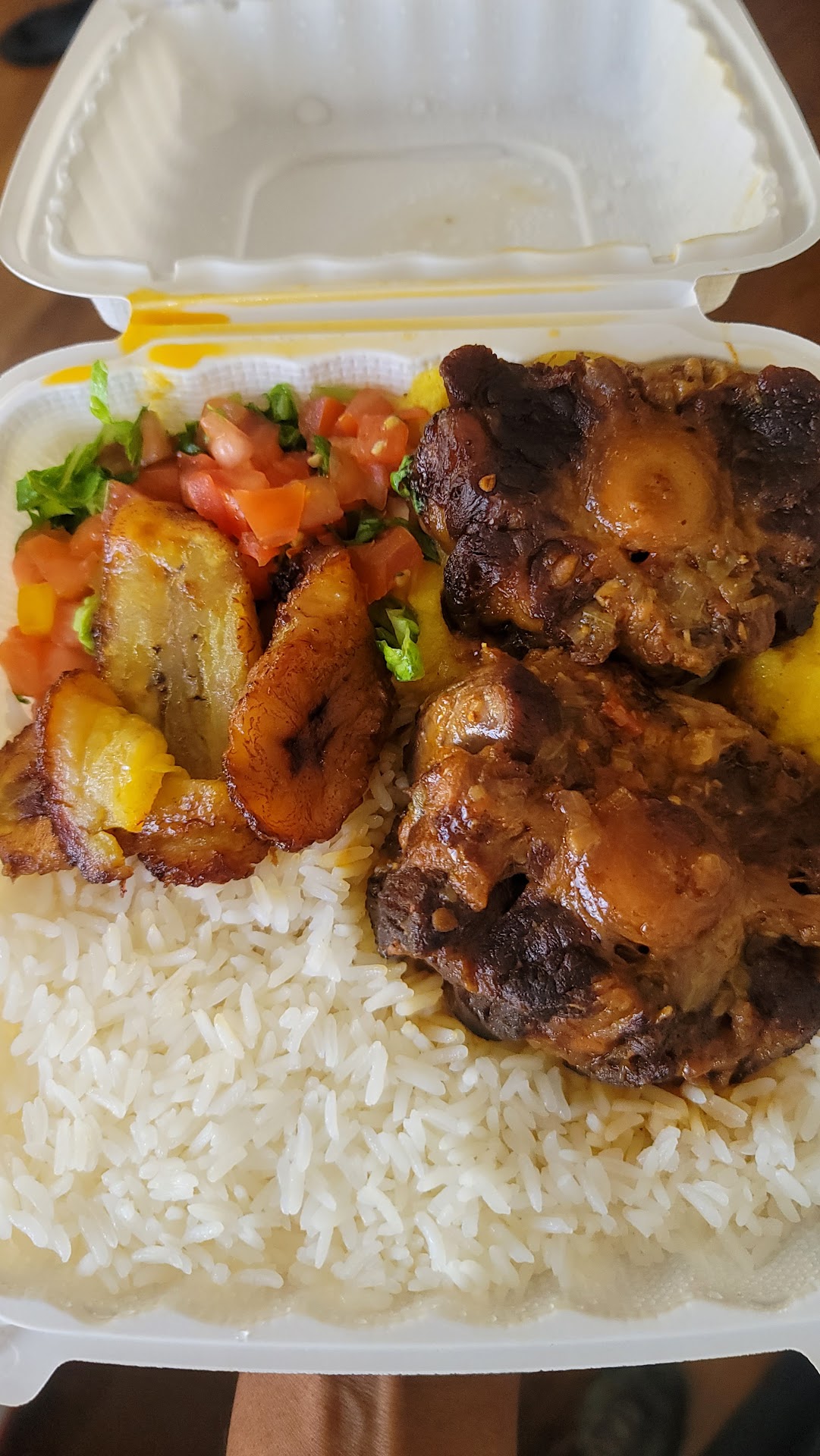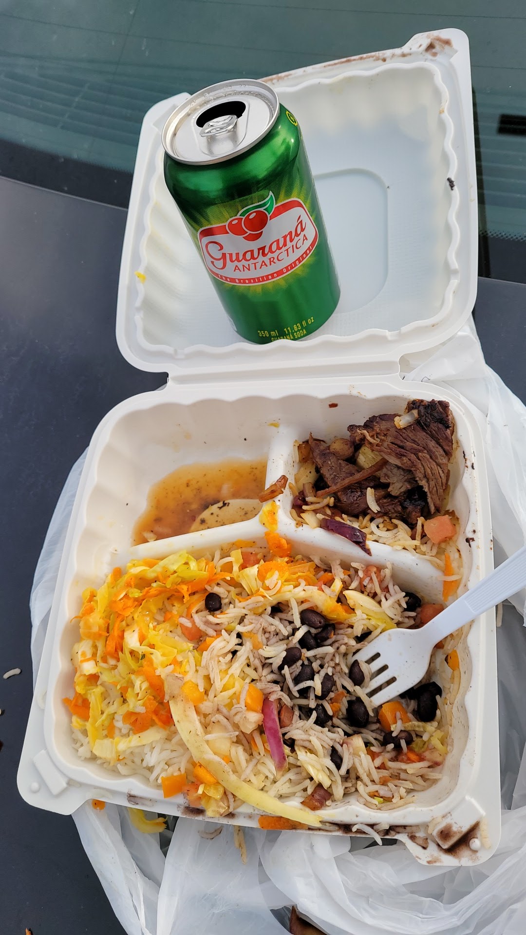 I stopped by to get some food, and I filled up a to go box with rice, beans, and meat. Another gentleman who was there at the same time, did exactly the same.
