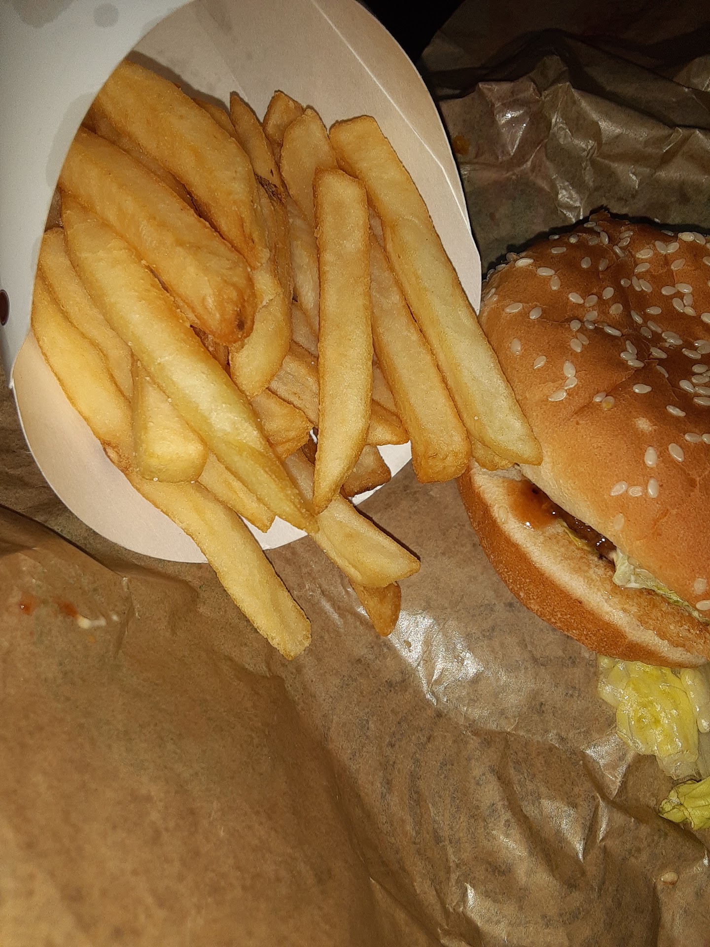 Read moreI ordered a BBQ 🐔 sandwich with 🍟 and a sweet tea. I went thru the drive thru which was fairly quick, however, I was incredibly disappointed when I got home and began eating My 🍟 were semi- cold (& I'm only a 2-3 minute drive away) and also had an "old grease" taste & color to them🤮. I absolutely believe they were using old frying oil for a variety of food items and reused it many many times without changing it!! I'm not saying I believe it sat for days and days, however, In my opinion and according to the taste, it definitely was used that entire day and most definitely NEEDED to be tossed and replaced- possibly hours before preparing my order! Other than the small-dime sized squirt of BBQ sauce on the bun, The chicken sandwich was tasteless. I've had a few competitors BBQ chicken/burger sandwiches recently which were All delicious! Unfortunately, the promotional period for this particular sandwich ended elsewhere leaving Burger King as the only option within 5 miles of me . I was craving the taste of BBQ sauce and quite looking forward to it, instead I ended up extremely dissatisfied. It all was grose with the exception of my sweet tea. 😒.🤮.😒. Do better Burger...