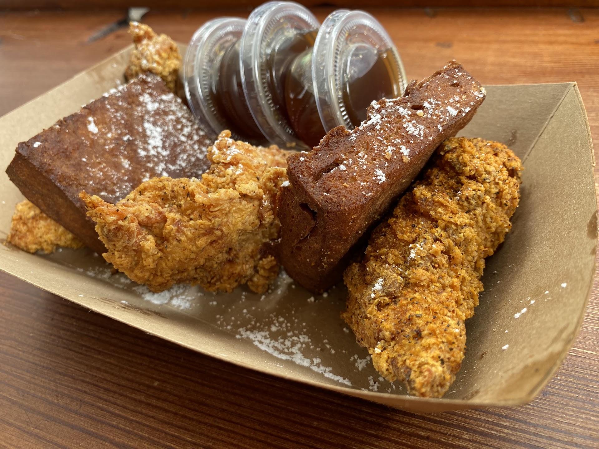 They were out of chicken and waffles when I got there, which shouldāve been a red flag; waffles can be cooked fresh in just a few minutes, and if theyāre out of batter, mixing up more is also a minimal time investment. I wasnāt too put off by this, however, as they also had chicken and French toast. I love French toast, so⦠hey, why not?