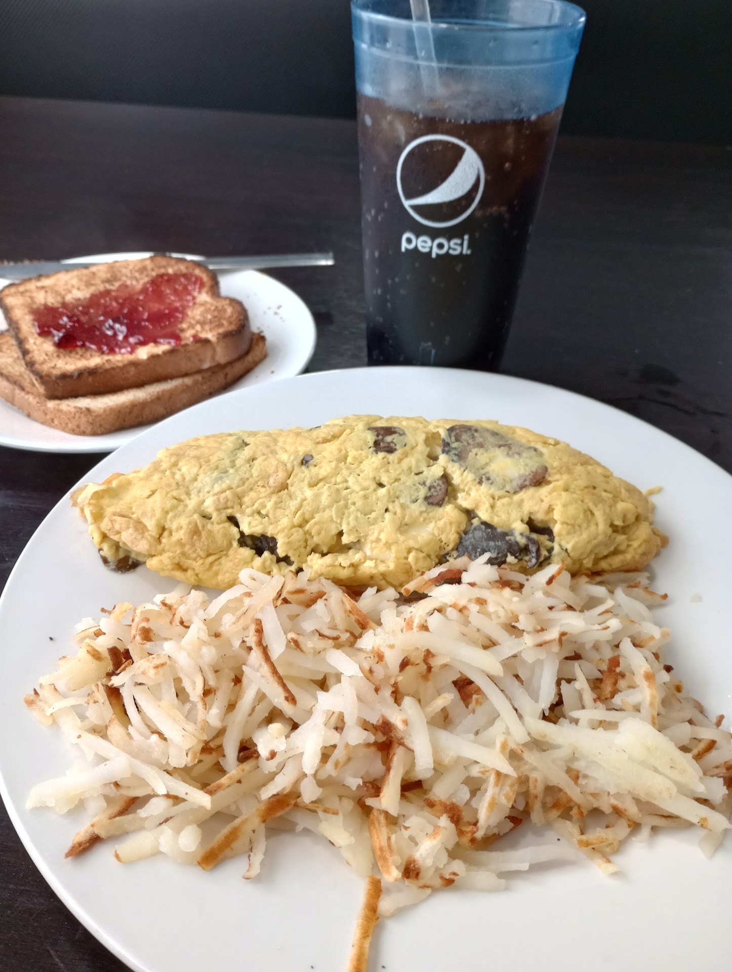 Read moreI tried to come here a few days ago, but all the parking spaces were full. I decided to come back a few days later, and I was able to get in. I had heard about it, so I decided to give it a try. There was so much on the menu that I couldn't decide. I finally settled on the Mushroom and Swiss Omelet. It came with Hash Browns and Toast, so I settled on Wheat Toast. I also had a Diet Pepsi. It was delicious! I will probably come back, but when I don't know, since it is on the west side. It is very nice and brightly decorated. It looks nicer than the restaurant previously in this location. I can see why it was hard to get into...