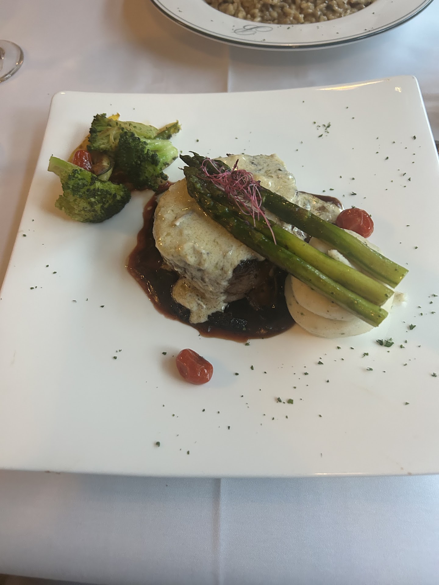 We were seated 30 minutes after arrival even though we arrived on time. We were originally seated in the wrong section (Founder’s) even though we had clearly asked for a different section (Dining).