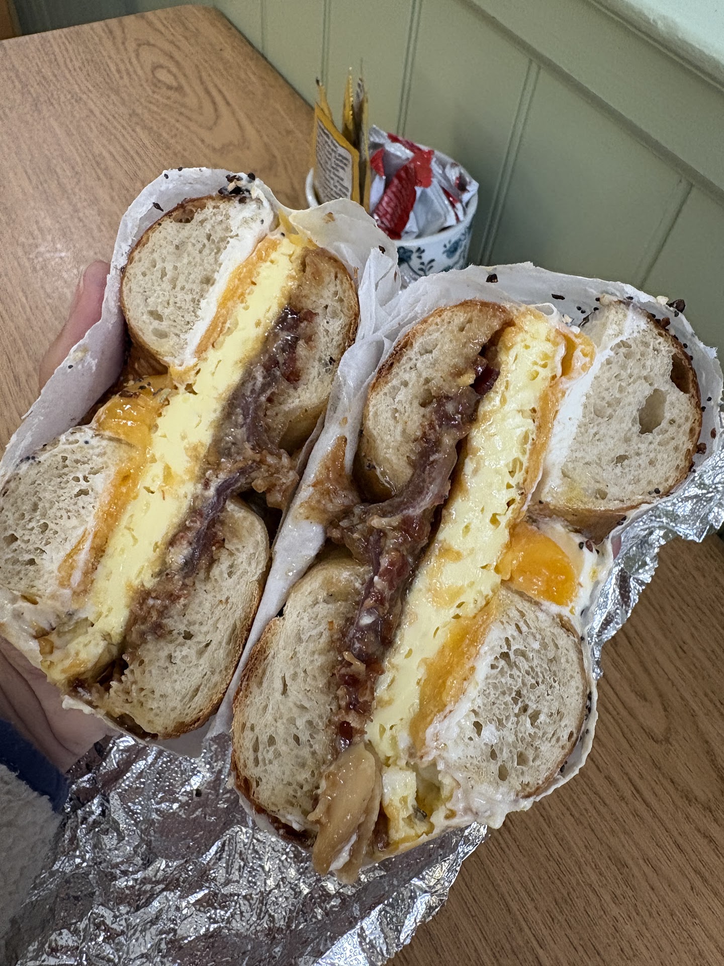 Ā Ā Ā Read moreBagels were fine, as good as Nate's. They lose stars due to their sandwich department. We need a bagel shop to create some remarkable breakfast sandwiches. We have a lot of spots with biscuit sandwiches, but really one with good bagel sandwiches...Nate's. I hardly ever order more than one or two bagels these days, and im not in the office bagel club, so bagel breakfast sandwiches are what I gravitate towards. And if I order a breakfast sandwich I expect the meat to be hot and the egg not to be microwaved. If I wanted cold meat I would have gotten a lox bagel or come in for lunch sandwich. So my feelings are the sandwiches here are an afterthought, which I get...the business came through the ranks as a market vendor where all they were selling was bagels and schmear. So maybe this will be something to adjust in the future and make better. Another thing that is missing from most bagel shops I try is a nice bacon cheddar cream cheese. If Chewy's or Nate's could come up with that...man it would be a game changer. So worth a try, always good to support local!