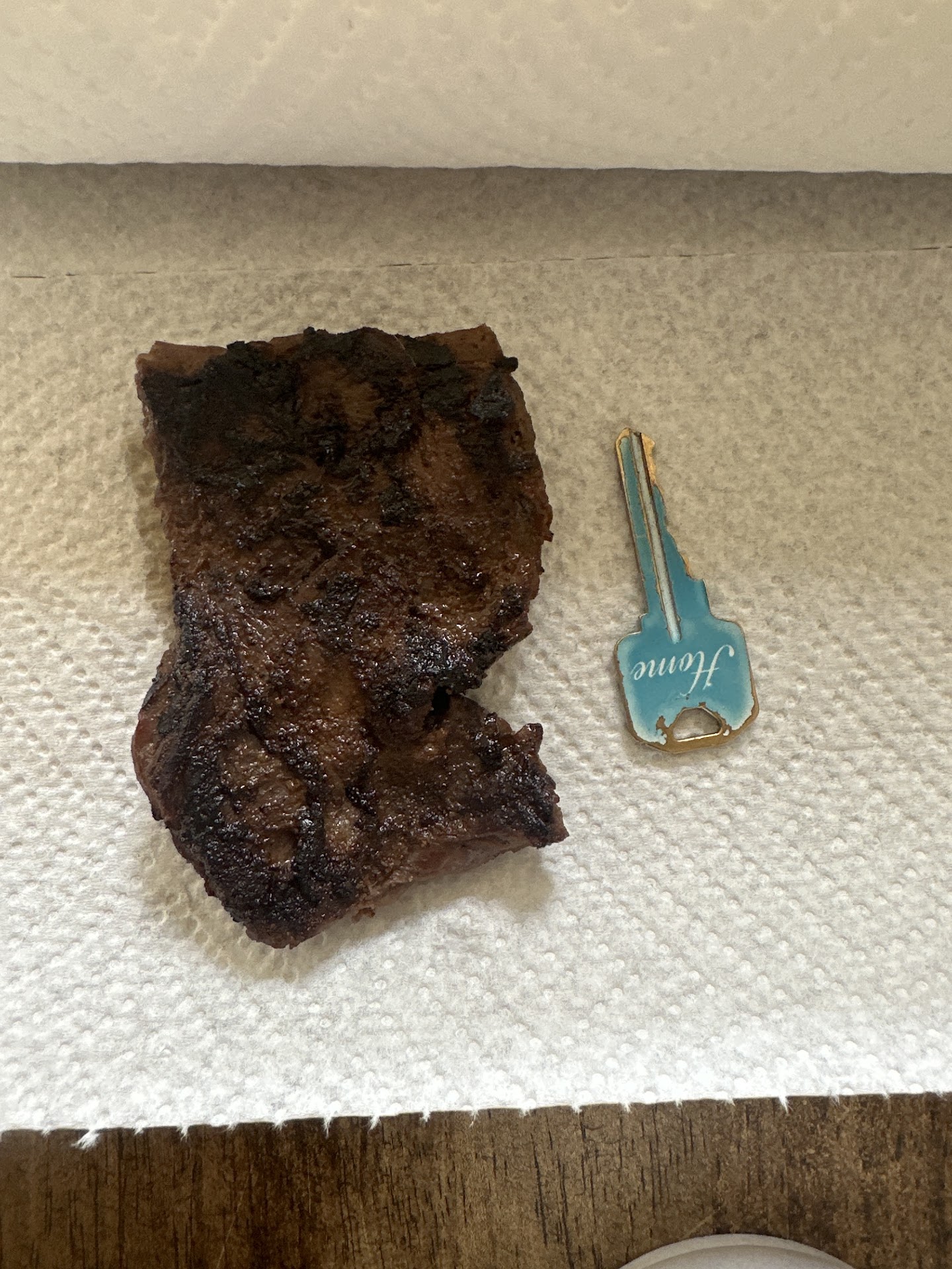 Read moreI'm a 14 year restaurant manager and this blew my mind. Ordered half chicken combo with an extra side item of the steak that comes with the quarter chicken and steak. Asked when ordered for it not to be cut in to pieces as last time it was horrible when chopped up as it's obviously chopped then cooked. Food came out it was cut up. The guy at the counter noticed it and went to get it fixed. 10 minutes later he walks out with the tiniest piece of steak I've seen saying his manager said this is what I get because it's a different steak. If it wasn't for already working all day I would have refunded my order and gone elsewhere (I've ordered this order 3 times now) first time it was a whole thin steak(amazing flavor) second time chopped and disgusting and third time now I've gotten a corner cut of the steak for an 8$ add on. House key for size comparison on photo. Management seems to be the problem. Guy at the front was...