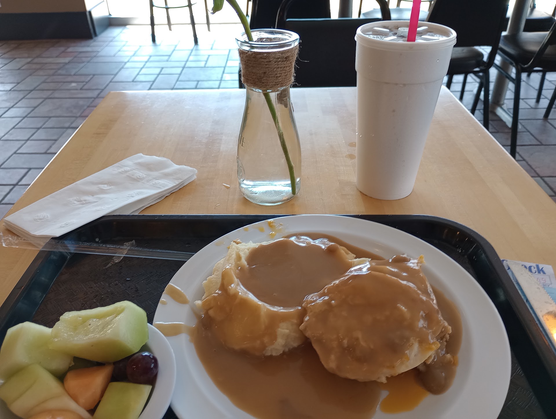 I decided to try it, because I heard about the background of the people who work there, a good location, I had tried one of their brownies when I got my hair done at my salon, and it's local, and we need to support local businesses. I had their fried chicken meal, and it was great. I plan to get back sometime. UPDATE:. November 8, 2022-I got some sad news about this place. According to Instagram, they will be closing on December 30th. I have been so busy I haven't had a chance to go back and try more food and get more pictures. I was looking forward to it. UPDATE:. December 9, 2022-Great news! According to Instagram, they are going to be staying open into next year and for many years to come. I want to have their fried chicken again and get some more pictures of their food. UPDATE:. April 19, 2023-I finally was able to come back today! The entree of the day was Stuffed Chicken Breast, so I ordered that, along with Mashed Potatoes and Gravy, Fresh Fruit, and Coke Zero. It was just as delicious as the first time I was here! I plan to come back and try more...