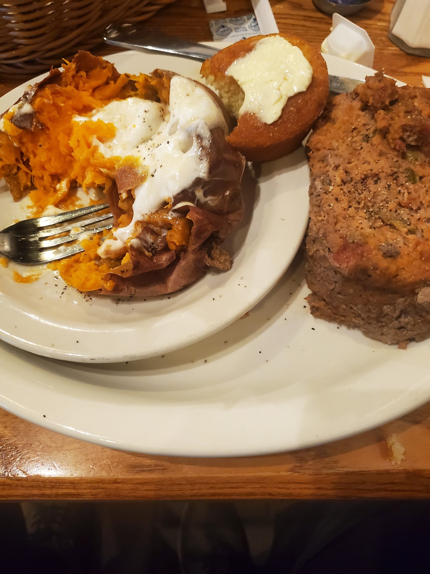 Read moreMy wife and I couldn't help but notice that Cracker Barrel was understaffed. It tends to be an ongoing problem in our county. Despite this fact, we were celebrating our fifth anniversary and enjoyed the extra time we had together. So, naturally, the atmosphere received five stars. The food was consistent with what I recall from having worked in this very restaurant years before. I know that goal is an important concern for the franchise from the corporate level down through management to the cooks reading the recipes. A funny story: To my knowledge, there isn't a vegetable that I don't like. Bell peppers are a favorite. My wife, on the other hand, can't stand them. She even asked that I not even bring fresh peppers into the house when we first got married. Anyhow, she and I both ordered chicken dumplings and meatloaf. When she began to dig in; she commented that the meatloaf wasn't as good as hers. "There's something about it..." she noted. When she was almost a third of the way finished with it, she realized that it included diced green peppers in it. I then took a bite off mine and agreed. I simply told her to make a note of that fact for future visits; and she moved on to her dumplings, which we both knew we loved. Again, the five-star food was consistent. The service we received would have pleased the beloved Uncle Hershel. We were truly treated as guests; and our server had our service, as well as the service of those around us, as her top priority. Shout out to Tralaina! We were thrilled to make her acquaintance. These factors deserve a service rating of five stars. Lastly, I feel compelled to acknowledge: We, with the aid of three complementary 'clam shells', purchased four meals with appetizers for a little over ten dollars per meal. How management can provide such an affordable experience is beyond my current comprehension. Price wasn't even a factor considered in the official rating; but I will be appreciating it tomorrow at...