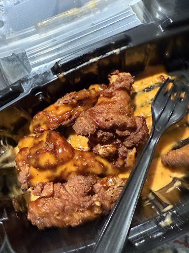Read moreFirst time customers- we ordered online, process was easy and fast; for an in person pickup. My husband notes that the front counter person was very friendly and personable- greeted him right away and our order was ready. Our food was packaged well. The food; however, was very underwhelming and undesirable! We ordered 2 order of wings- both orders were overcooked to the point of being burnt-the jalapeños poppers were overcooked and we considered burnt. Lastly, the wings were extremely overcooked ( again burnt) and covered poorly in the ordered sauces. The shrimp fries were mediocre - butat lesser they were not overcooked. My husband ordered the Shawarma fries- it was undercooked and not seasoned. So we certainly had a mixed bag of improperly prepared, cooked and seasoned food. We won’t give it a second try- and don’t feel it’s worth the visit. Hope this honest...